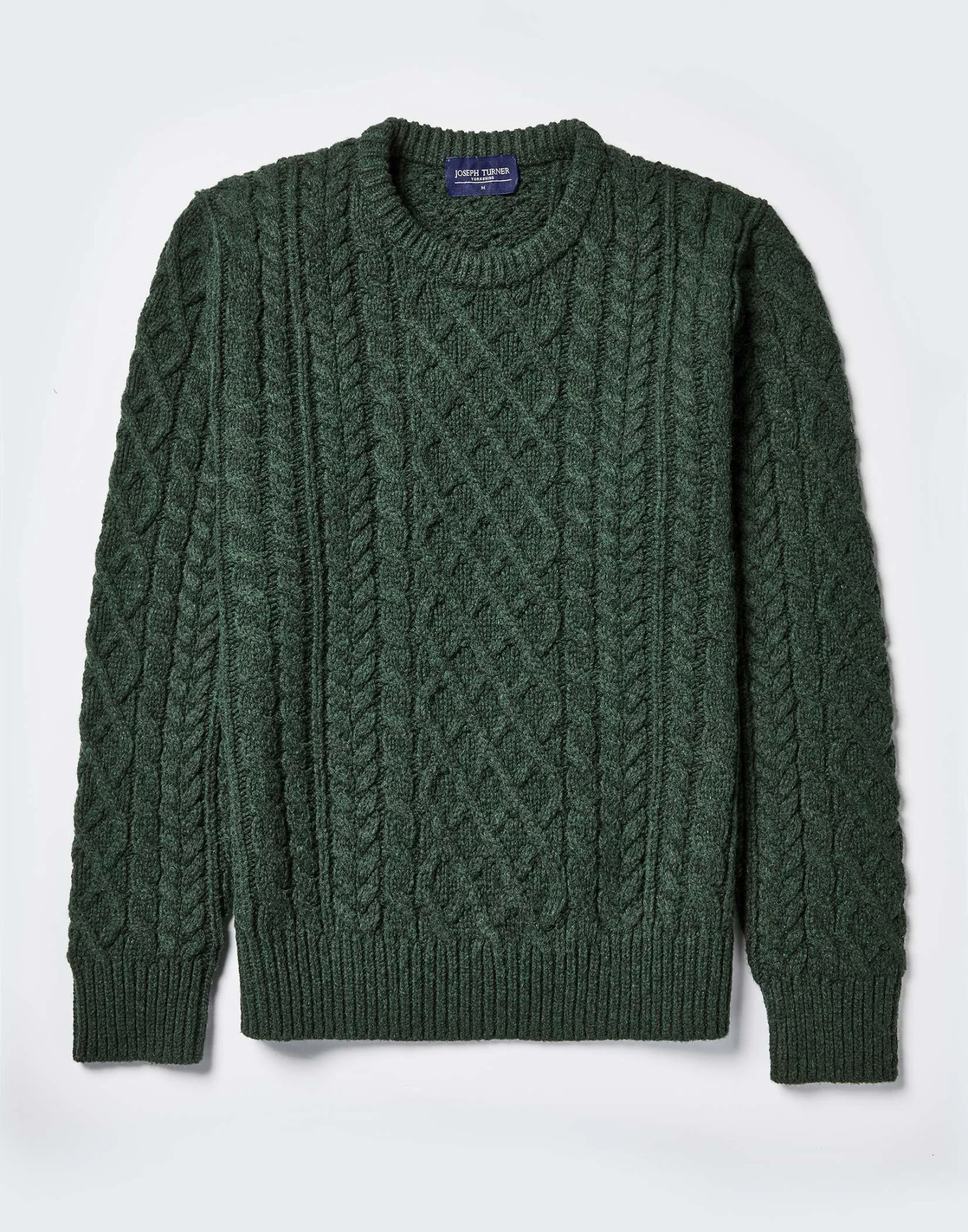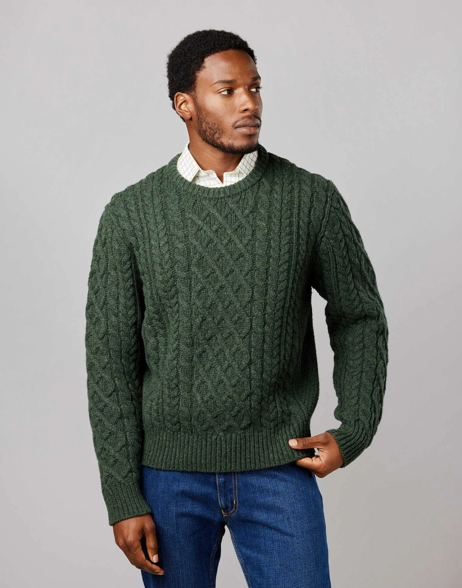 Knitted in a robust 3-gauge knit this jumper boasts an all-over cable design creating a timeless and textured look. This chunky crew neck jumper adds a touch of rugged charm to your outfit making it the perfect companion for your outdoor adventures. Crafted with the utmost care this jumper is not only stylish but also exceptionally warm and cozy providing comfort in any weather. Embrace the heritage and durability of the Aran Jumper a must-have for those who appreciate both style and functionality.