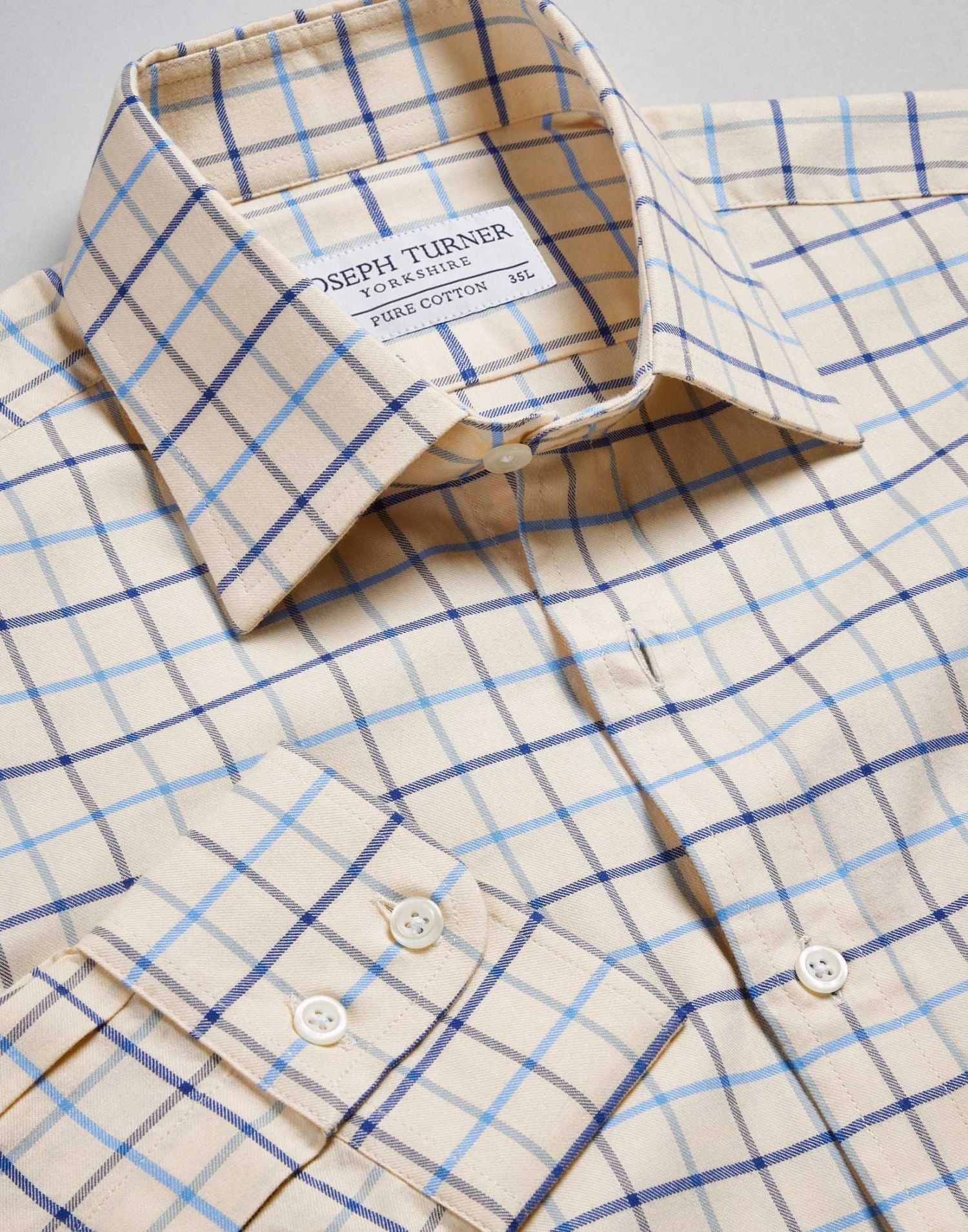 Perfect the British country style in one of our heritage tattersall shirts featuring a blue & navy check design. Tailored from pure brushed cotton twill with a two-piece collar and a split back yoke for a smooth fit this classic men’s country shirt will look just the part teamed with corduroy trousers and a pair of country brogues.
