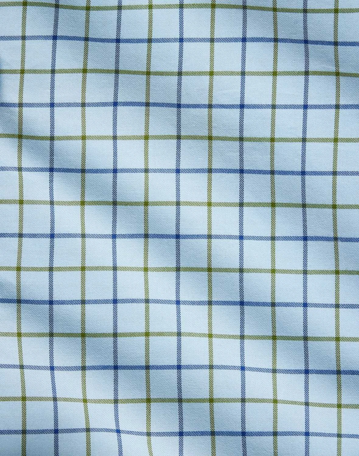 Perfect the British country style in one of our heritage tattersall shirts featuring a blue-base with an olive/blue check design. Tailored from pure brushed cotton twill with a two-piece collar and a split back yoke for a smooth fit this classic men’s country shirt will look just the part teamed with corduroy trousers and a pair of country brogues.