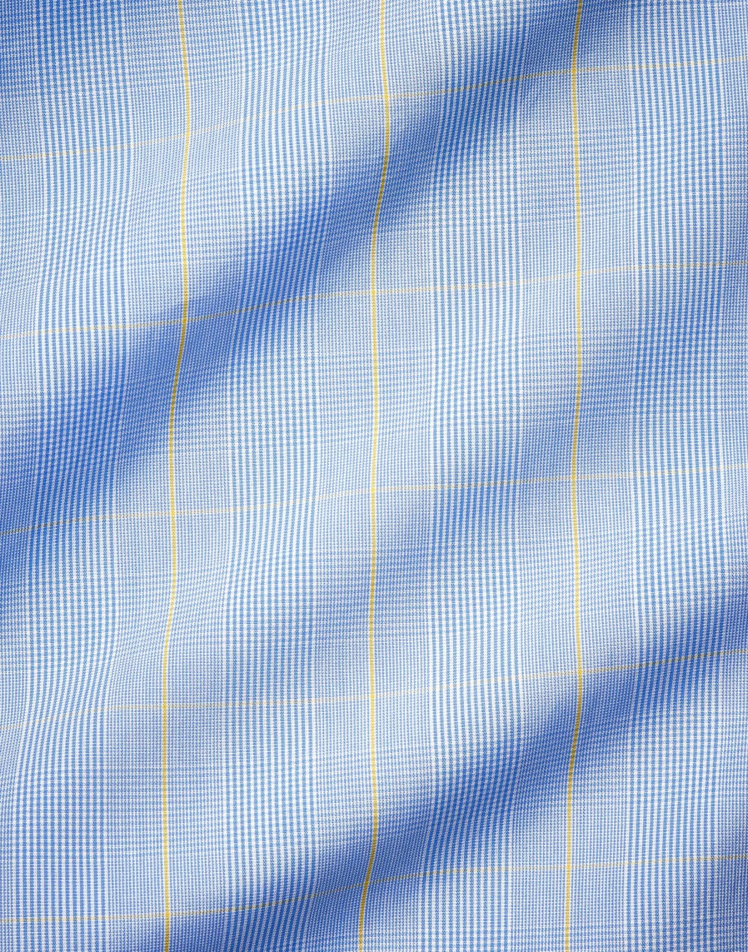 Crisp smart and comfortable this blue/yellow Prince of Wales check formal shirt is crafted with meticulous attention to detail using the finest two-fold cotton. Tailored to a classic fit for complete comfort featuring a split back yoke for ease of movement and with a choice of either single button cuffs or double cuffs for cufflinks. Team this Prince of Wales check shirt with one of our pure silk ties and a pair of Joseph Turner cufflinks to finish off your look.