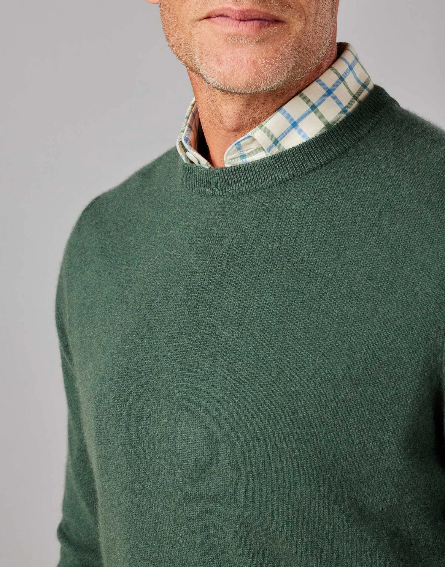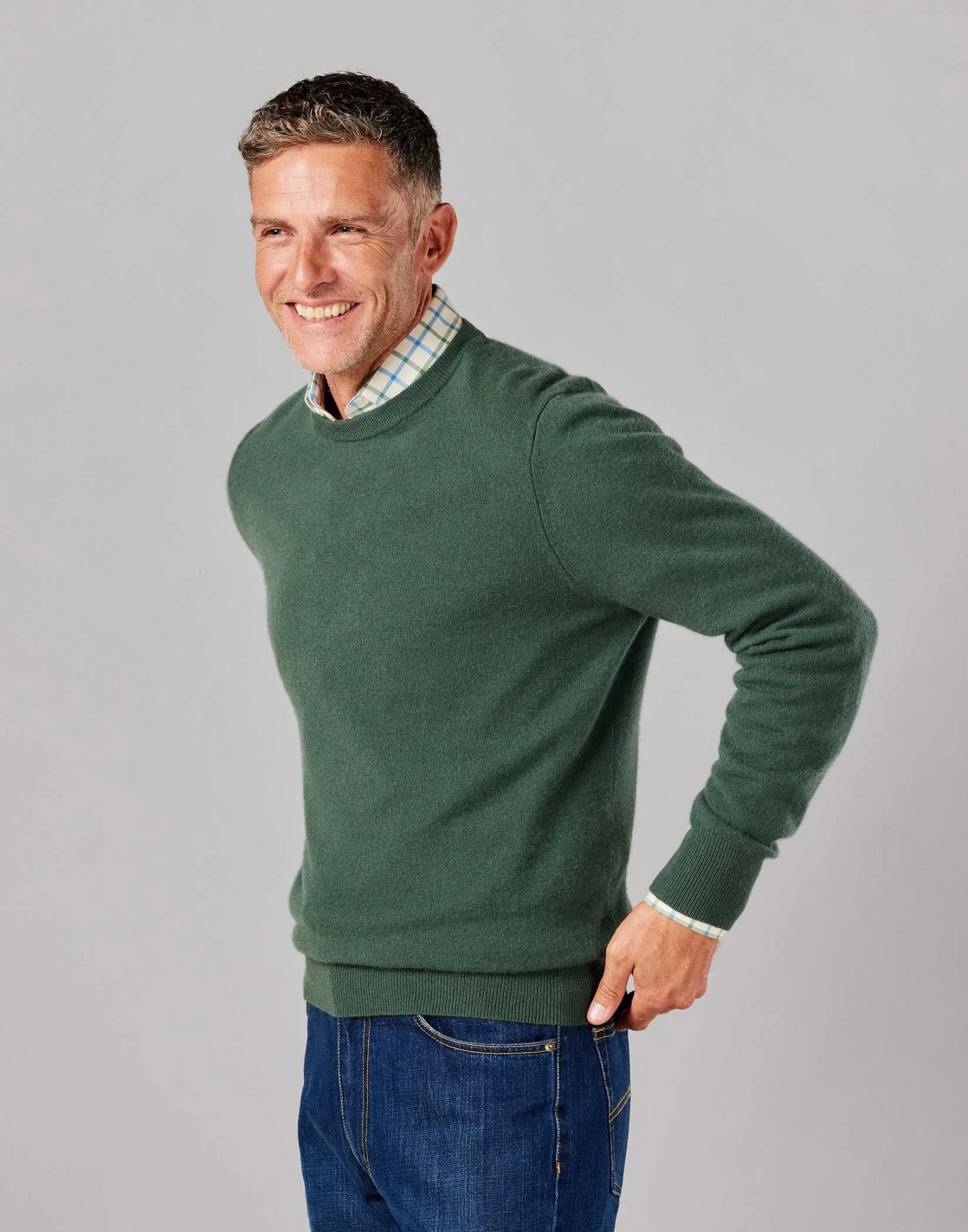 Crafted with meticulous attention to detail our 100% cashmere jumpers are the height of luxury and sophistication. We partner with one of the largest cashmere spinners in the world for our yarn supply. With production units across the globe and a strong reputation for servicing top names across the industry their expertise ensures consistent quality in every jumper we create. This versatile green cashmere crew neck jumper effortlessly transitions from casual to formal and can be worn on any occasion.