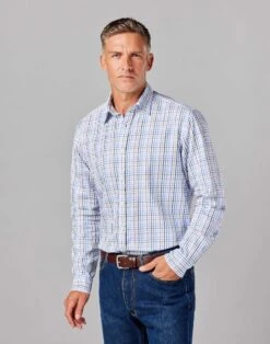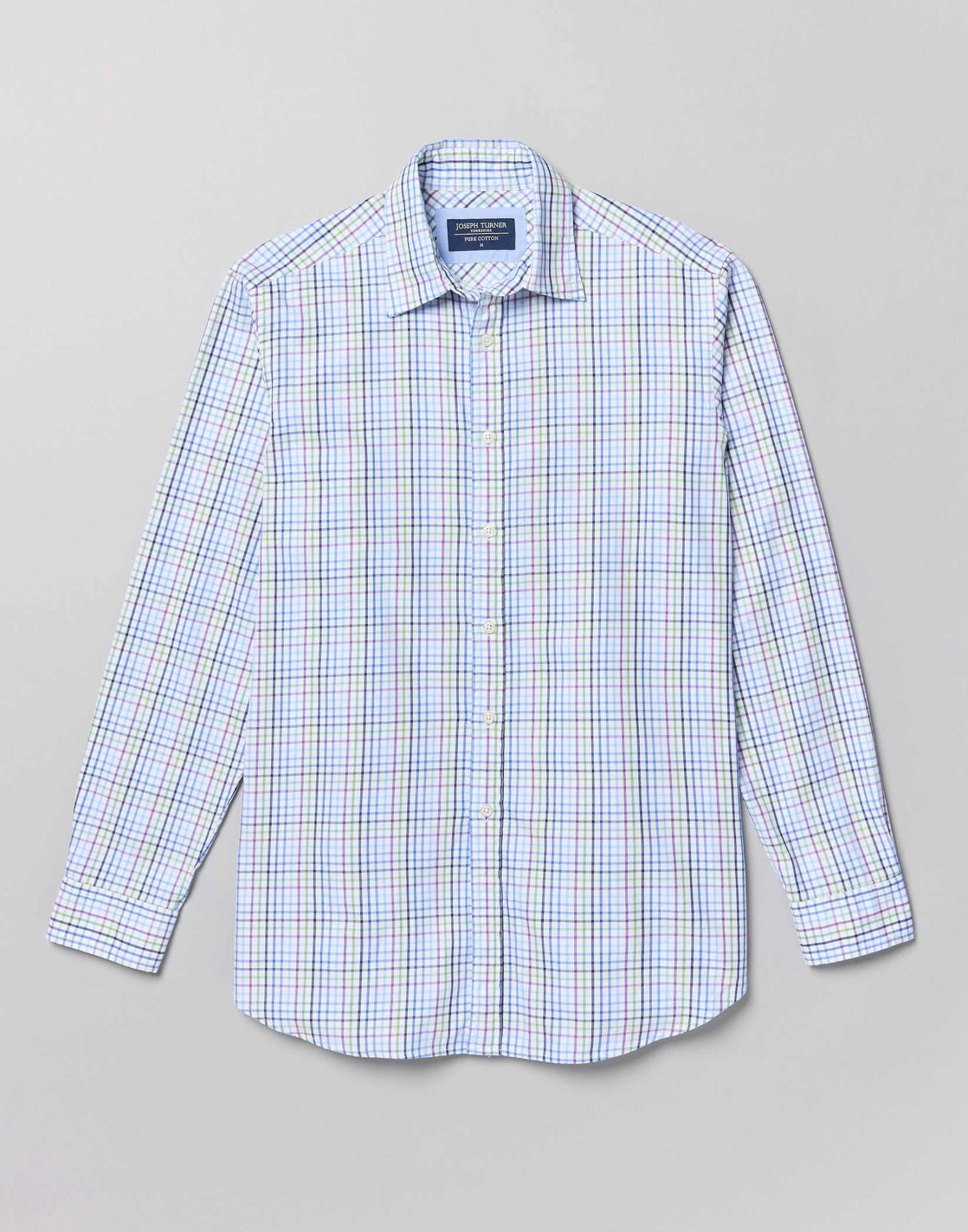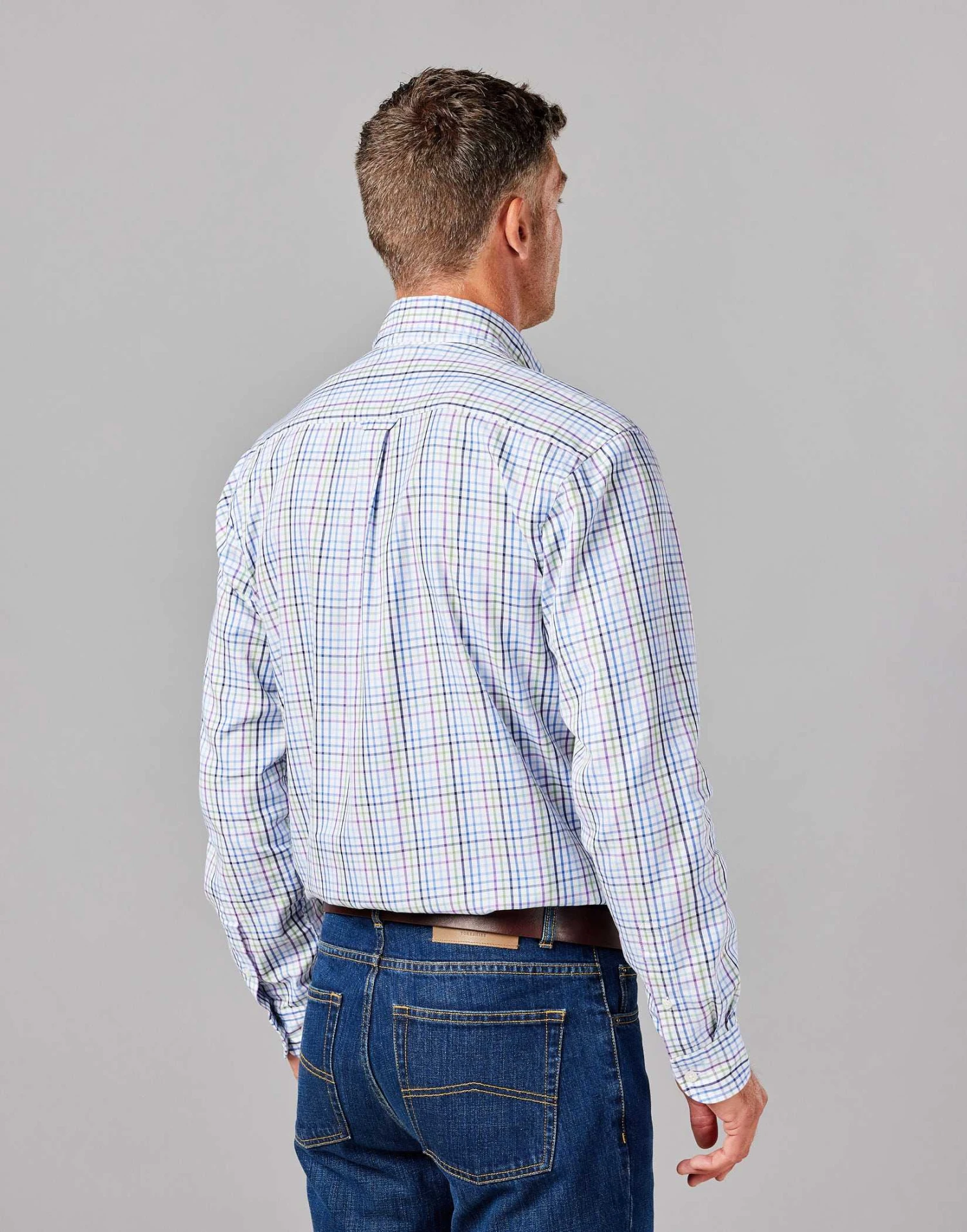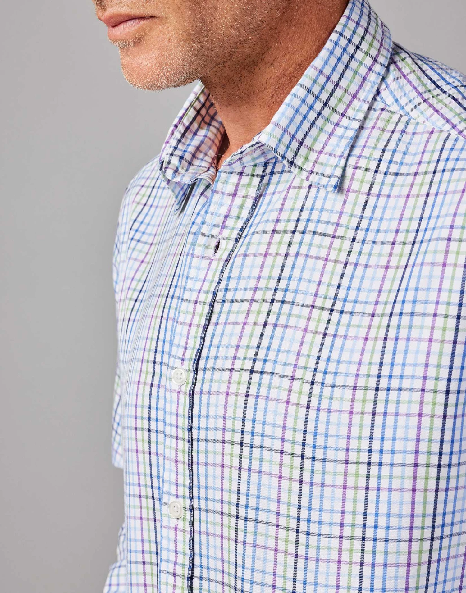 Whatever your weekend plans this easy-to-wear staple in a substantial cotton twill weave will do the job. Sporting a stylish navy blue green & purple check this versatile twill shirt will cover relaxed off-duty days equally as well as a Sunday lunch outing.