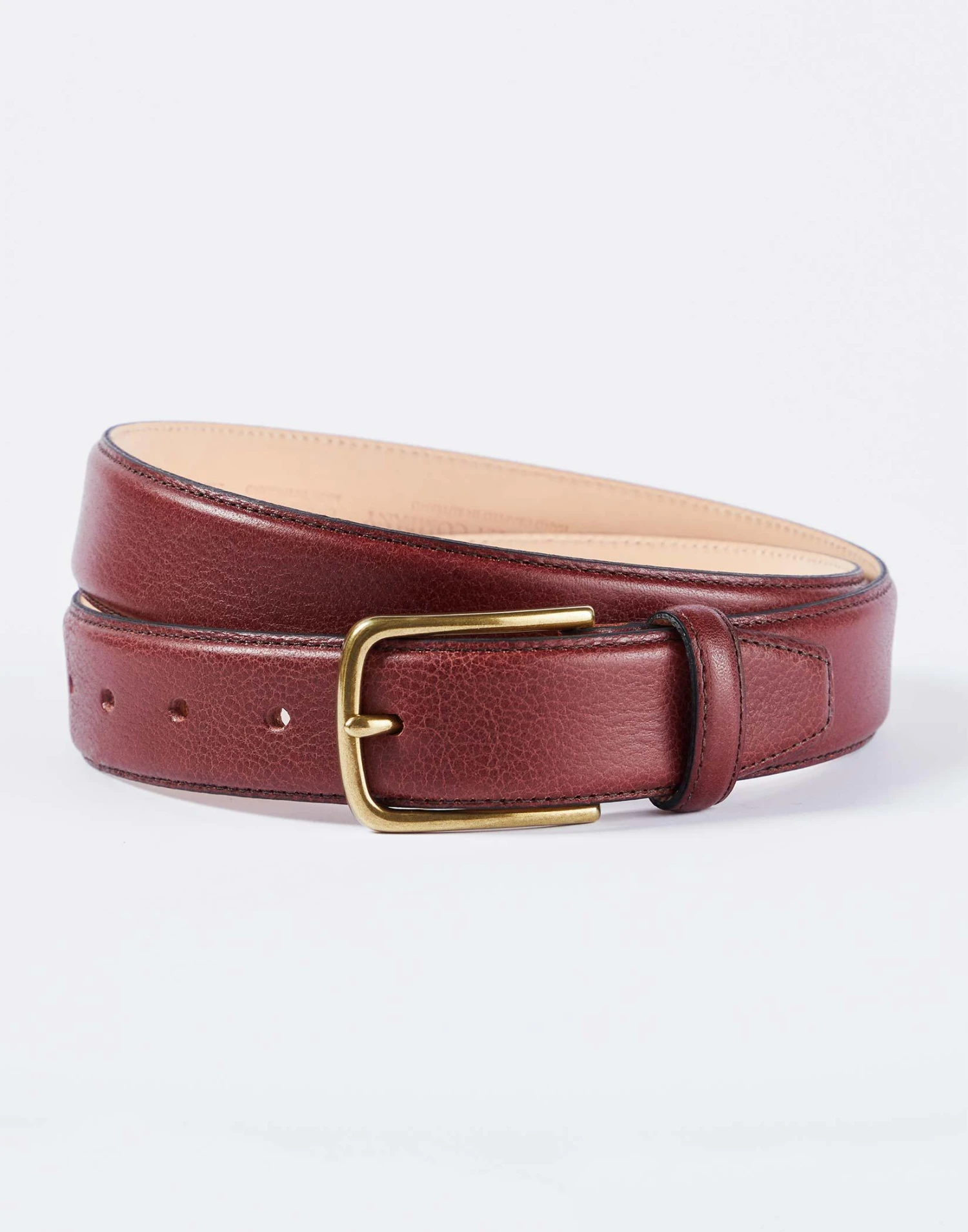Add the finishing touch to your outfit with one of our classic style leather belts in a rich oxblood shade. Hand-made in England from premium quality leather.