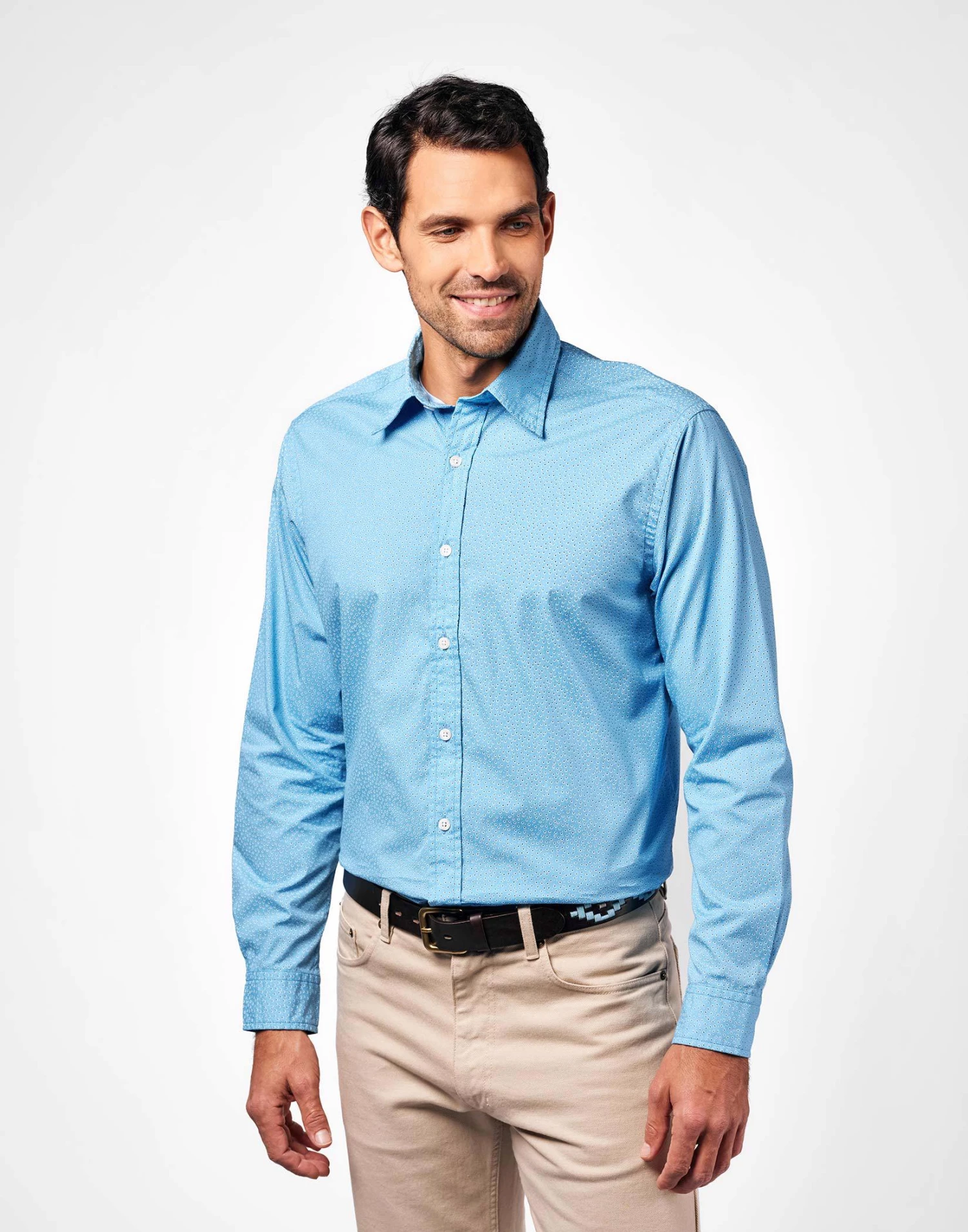 Soft cotton casual shirts featuring modern prints in classic colours that will add instant interest to your look. Our men’s cotton print shirt in blue micro flower is perfect for weekend drinks and lunches out.