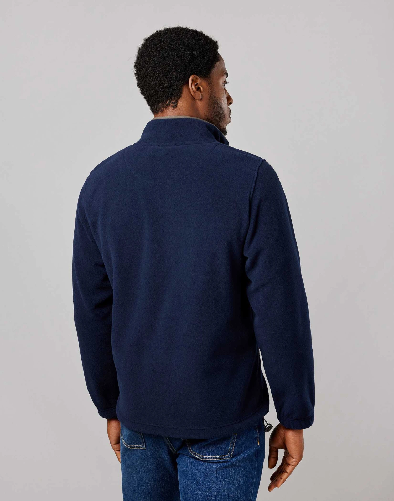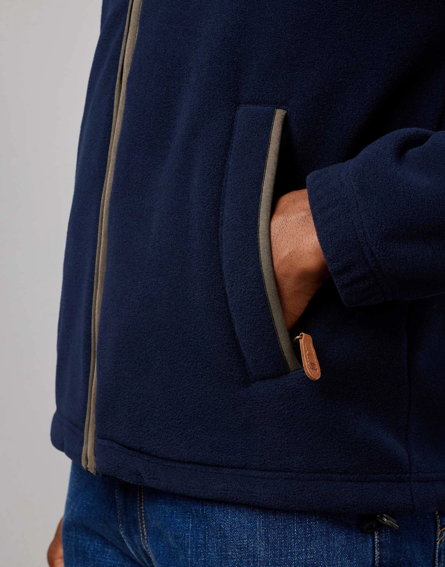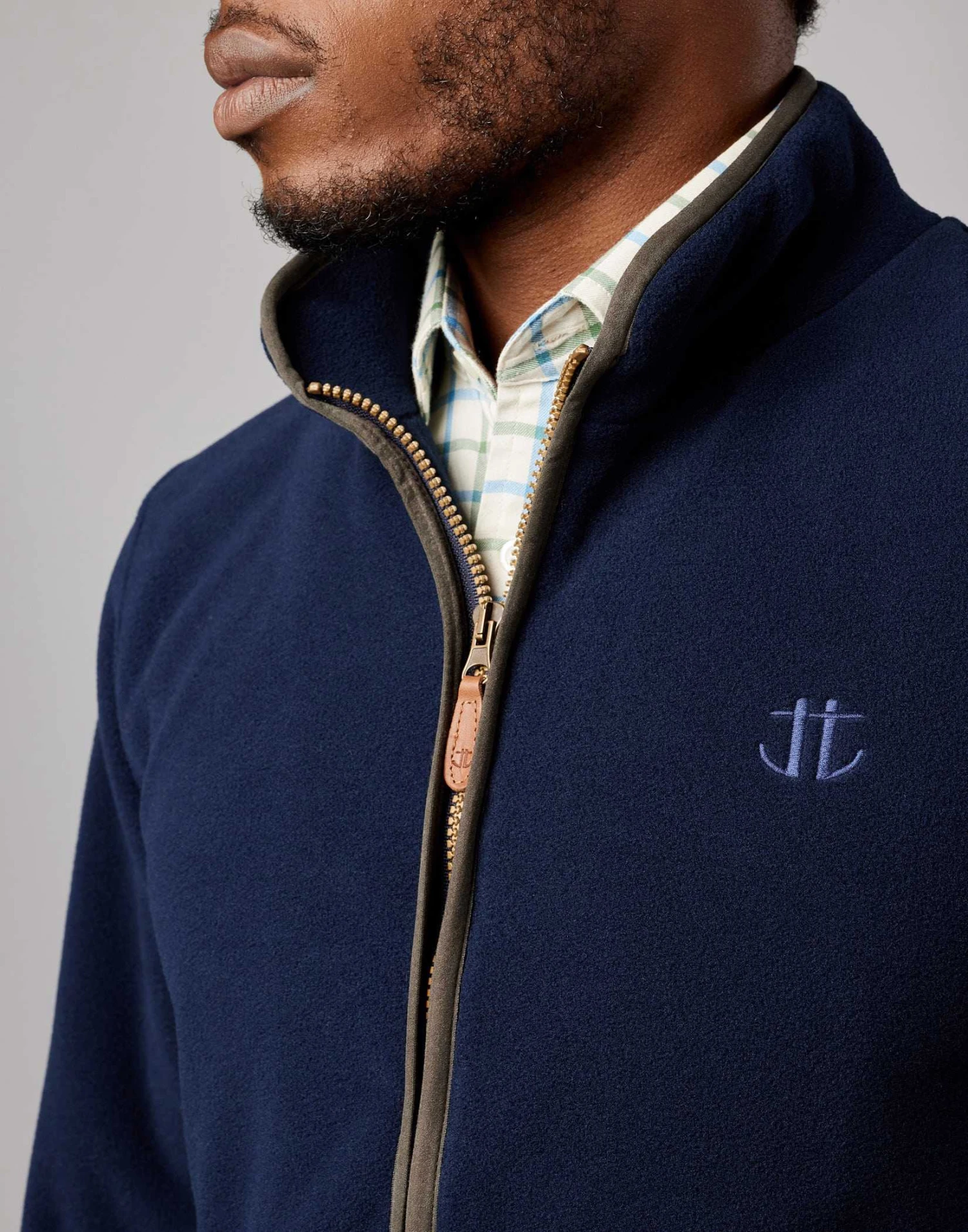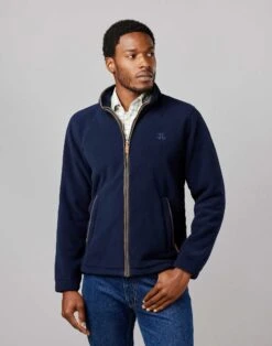 Introducing our men’s fleece jacket in a smart navy. Constructed from substantial polar fleece this jacket is designed to provide exceptional warmth and insulation ensuring you stay comfortable even in the coldest conditions. The adjustable drawcord at the hem allows for a customizable fit while the zip pockets and elasticated cuffs offer practicality and secure storage. The brushed cotton trim inside the back neck adds that extra finishing touch.
