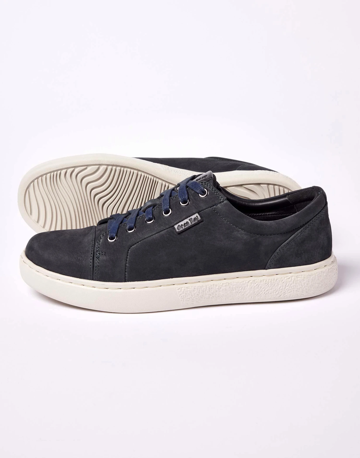 A contemporary trainer-style shoe from Orca Bay in soft nubuck leather. In a classic navy nubuck and featuring a lightweight cushioned sole and padded leather shock absorbing insoles these trainers offer both style and comfort.