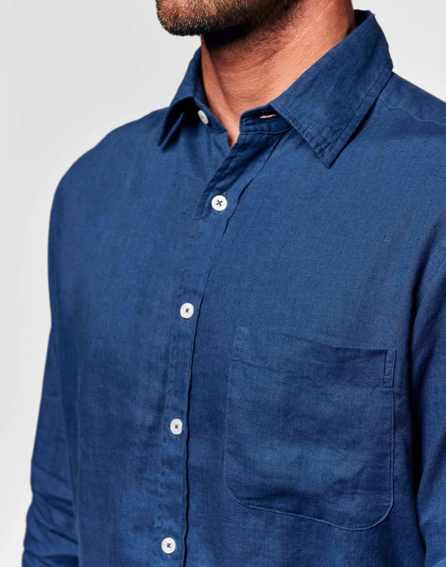 Instantly soft and relaxed with a beautiful natural texture our best-selling pure linen long sleeve shirts will keep you cool fresh and looking effortlessly stylish in the heat. Wear this Atlantic blue linen shirt with a pair of twill shorts to keep cool in the day or smarten up with cotton chinos in the evening.