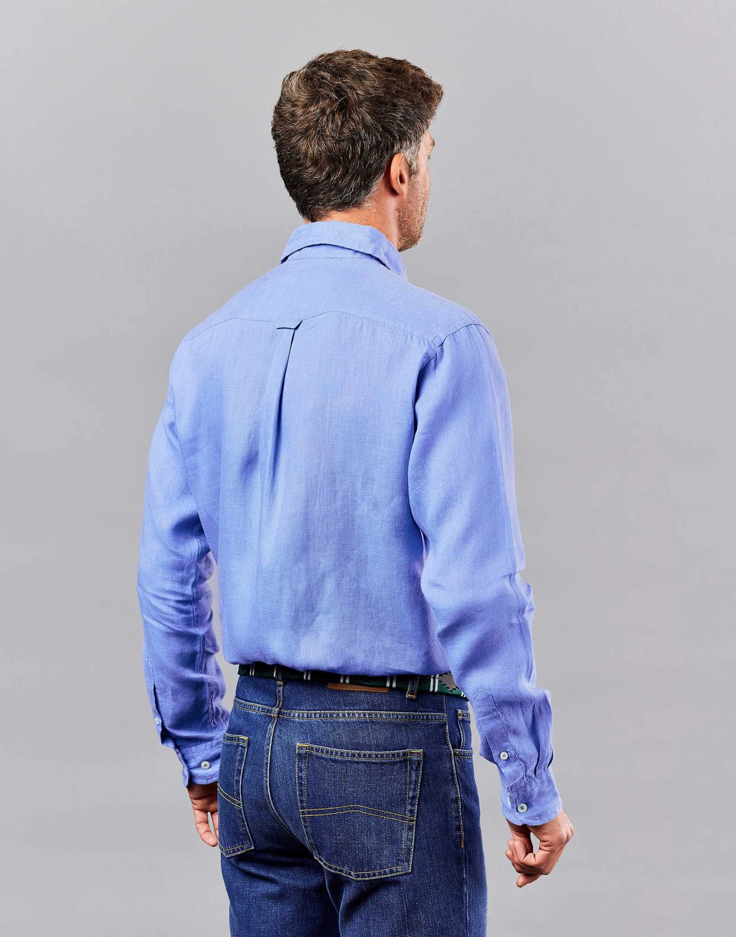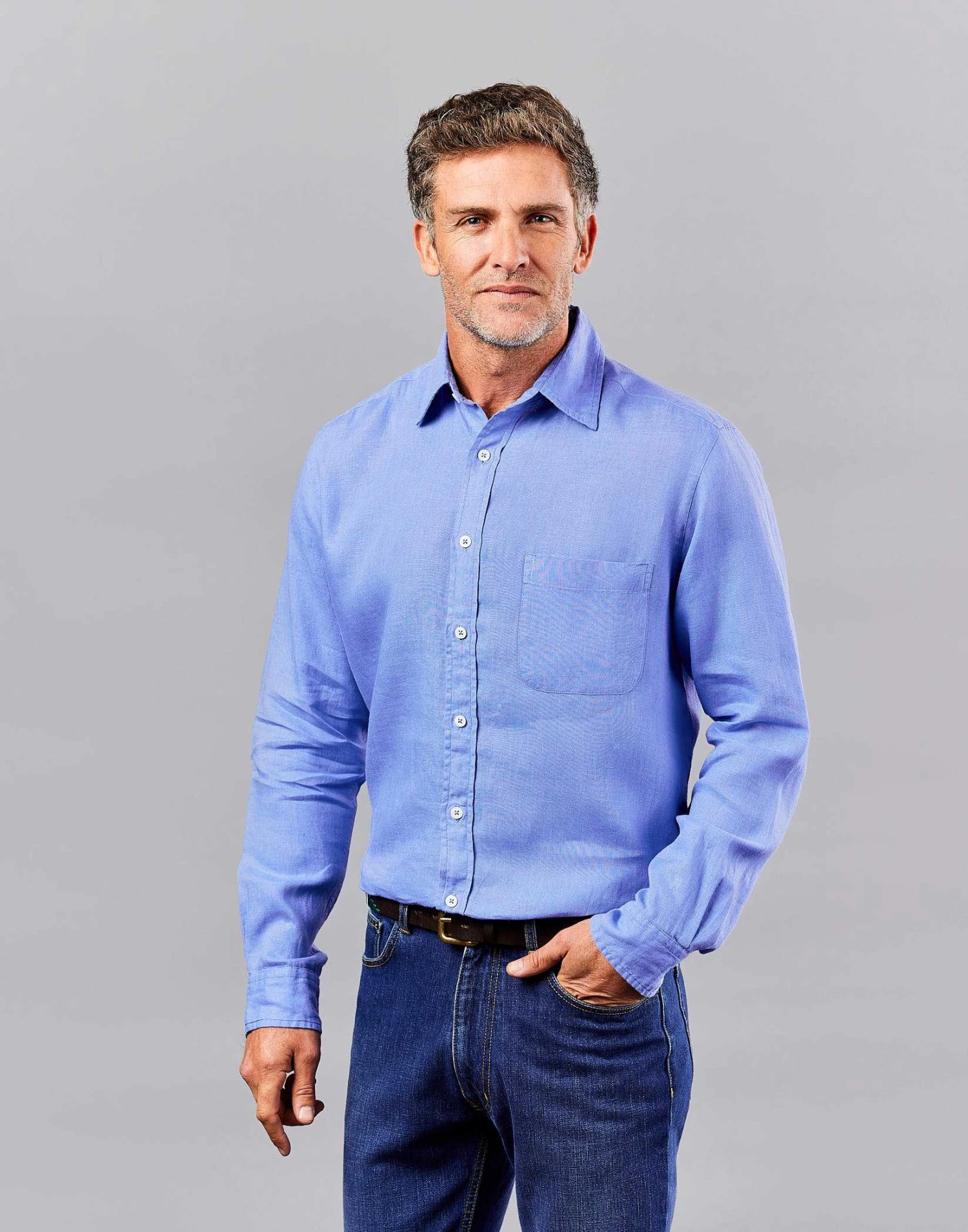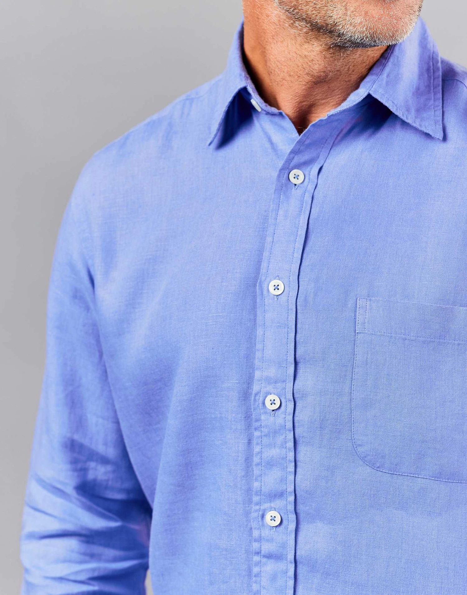 Instantly soft and relaxed with a beautiful natural texture our best-selling pure linen long sleeve shirts will keep you cool fresh and looking effortlessly stylish in the heat. Wear this classic blue linen shirt with a pair of twill shorts to keep cool in the day or smarten up with cotton chinos in the evening.