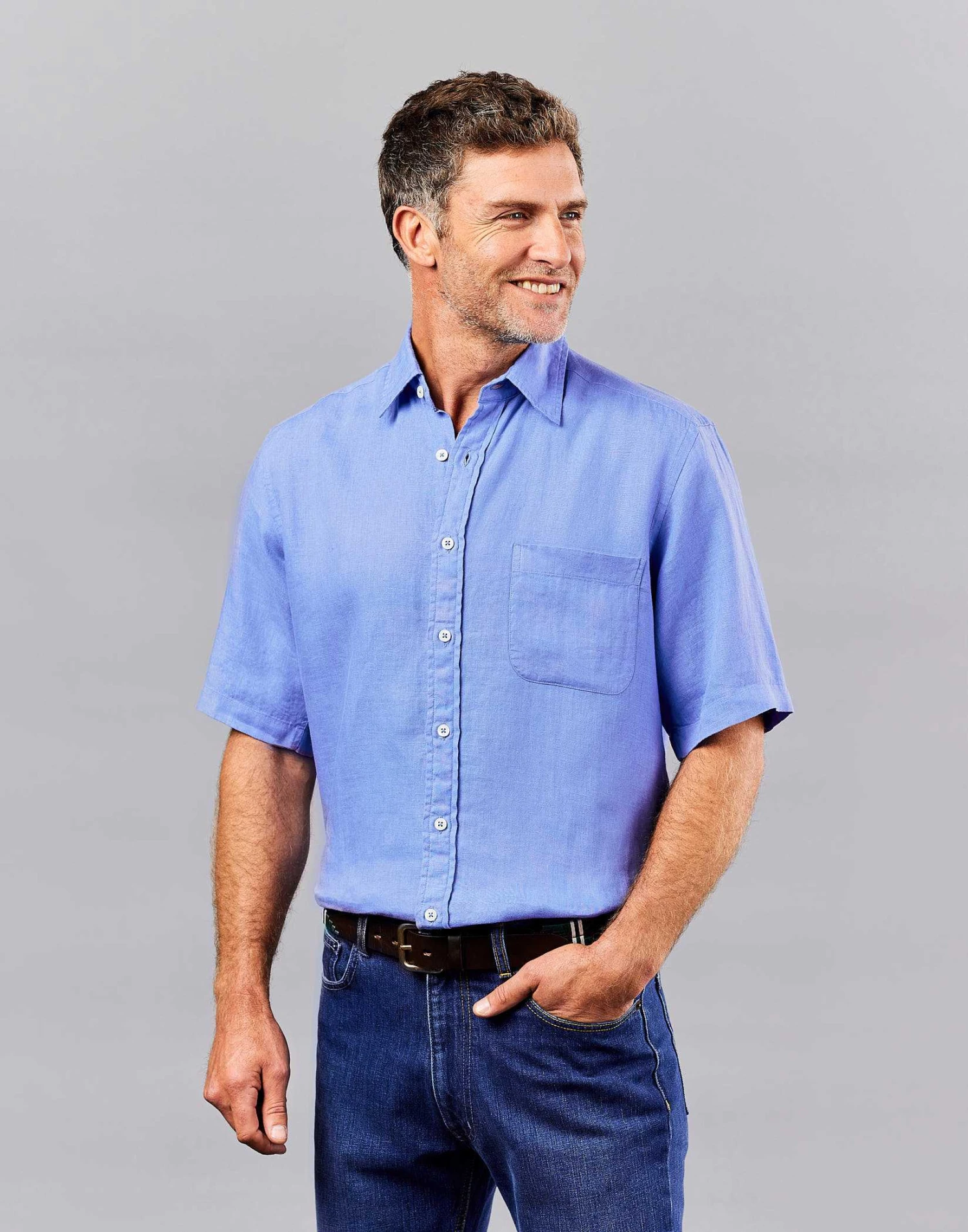 Instantly soft and relaxed with a beautiful natural texture our best-selling pure linen short sleeve shirts will keep you cool fresh and looking effortlessly stylish in the heat. Wear this handsome Pacific blue linen shirt with a pair of twill shorts to keep cool in the day or smarten up with cotton chinos in the evening.