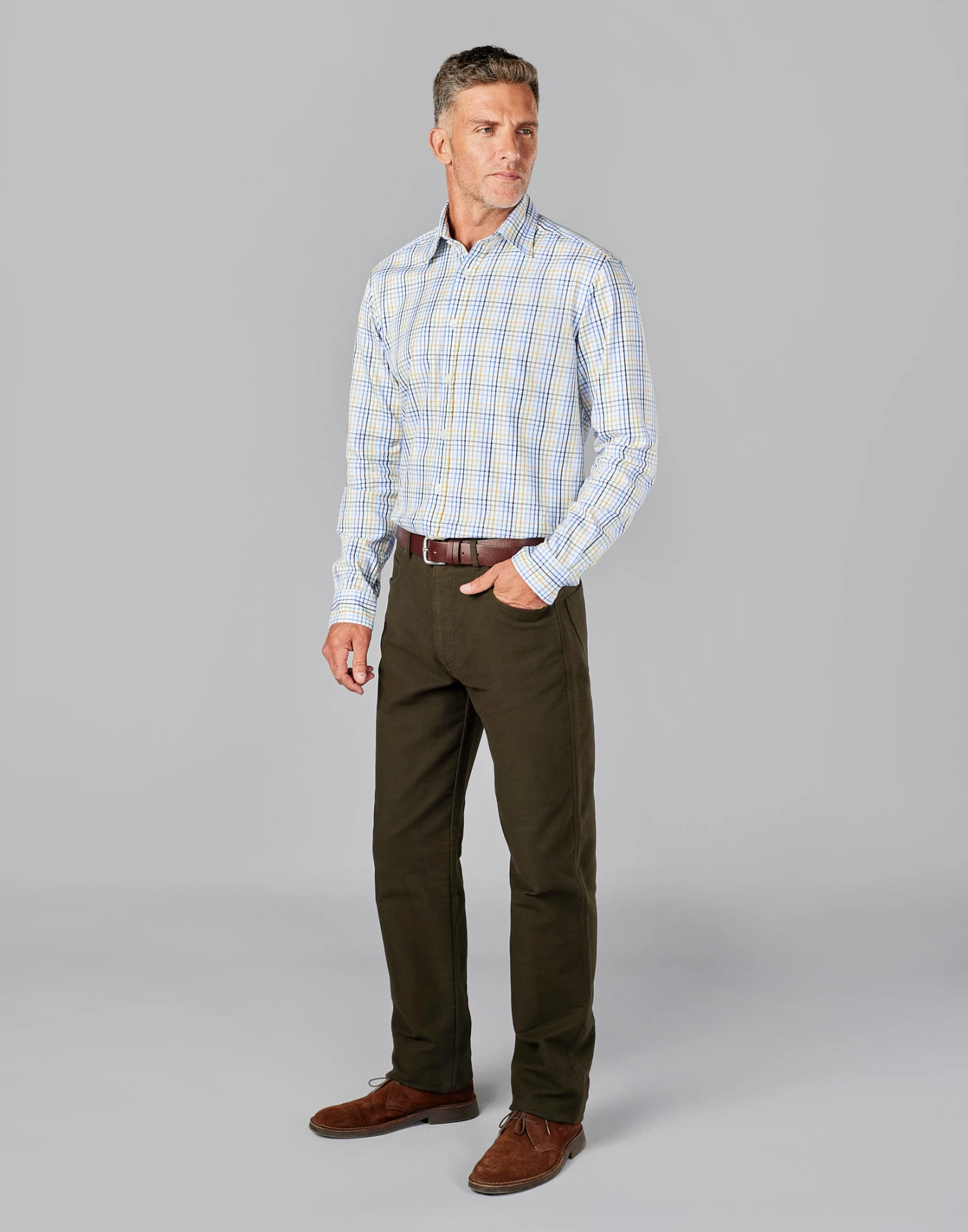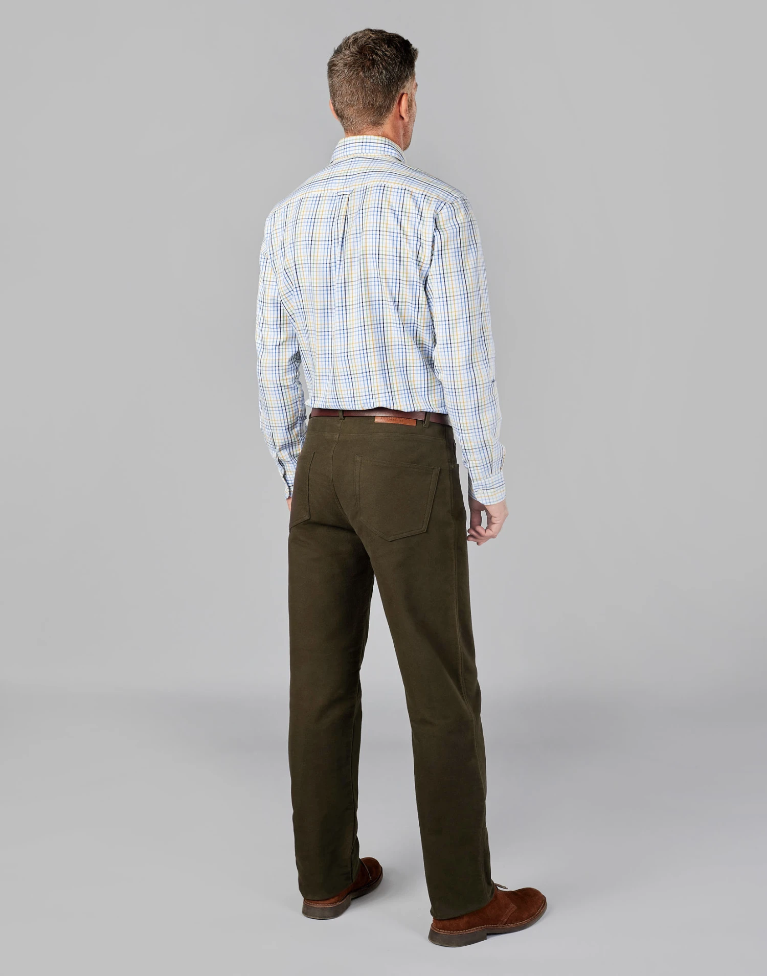Cut from quality cotton moleskin produced by Brisbane Moss of Lancashire our men’s khaki moleskin jeans are the perfect weight for colder months with a luxuriously soft handle and a comfortable fit.
