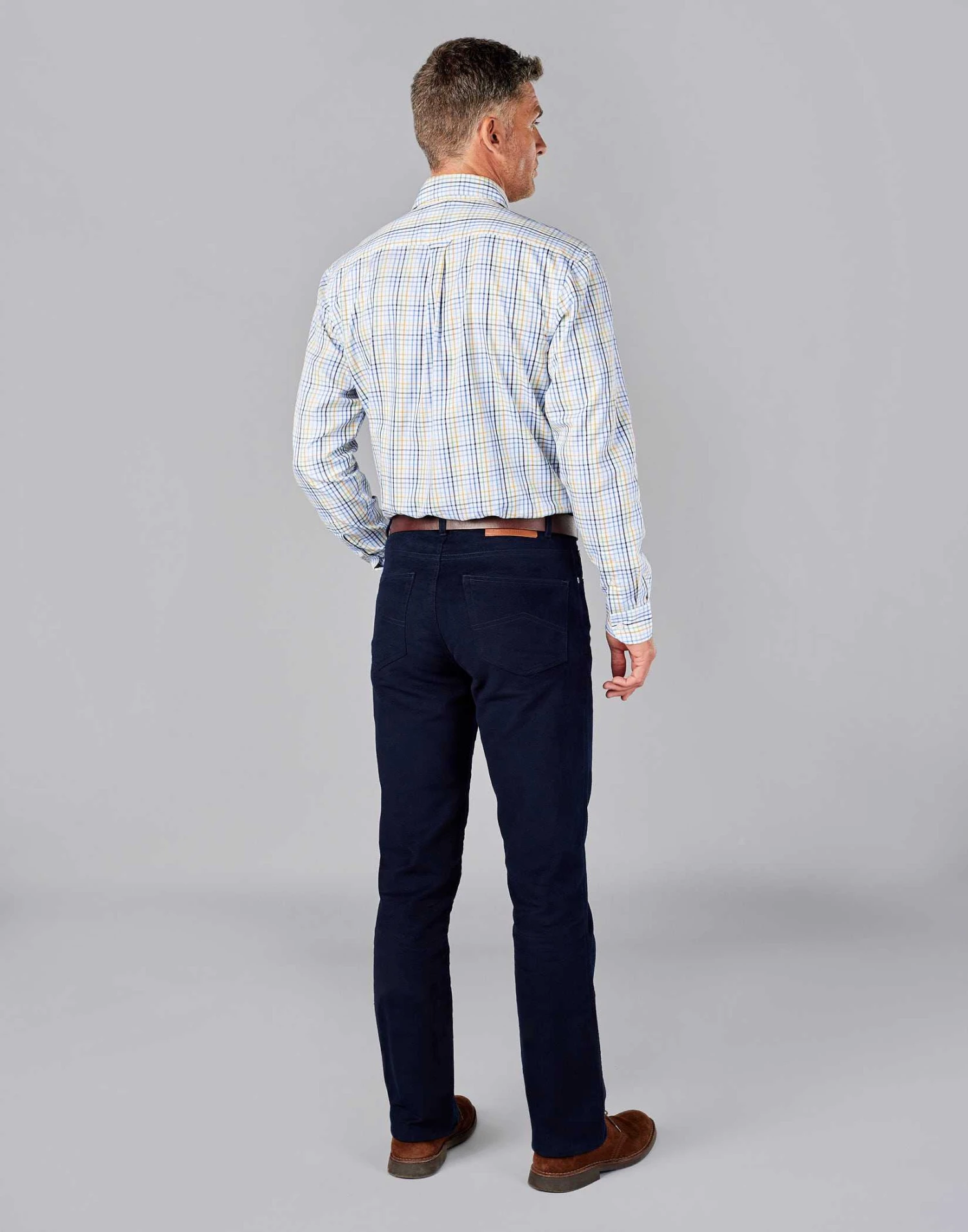 Cut from quality cotton moleskin produced by Brisbane Moss of Lancashire our men’s navy moleskin jeans are the perfect weight for colder months with a luxuriously soft handle and a comfortable fit.