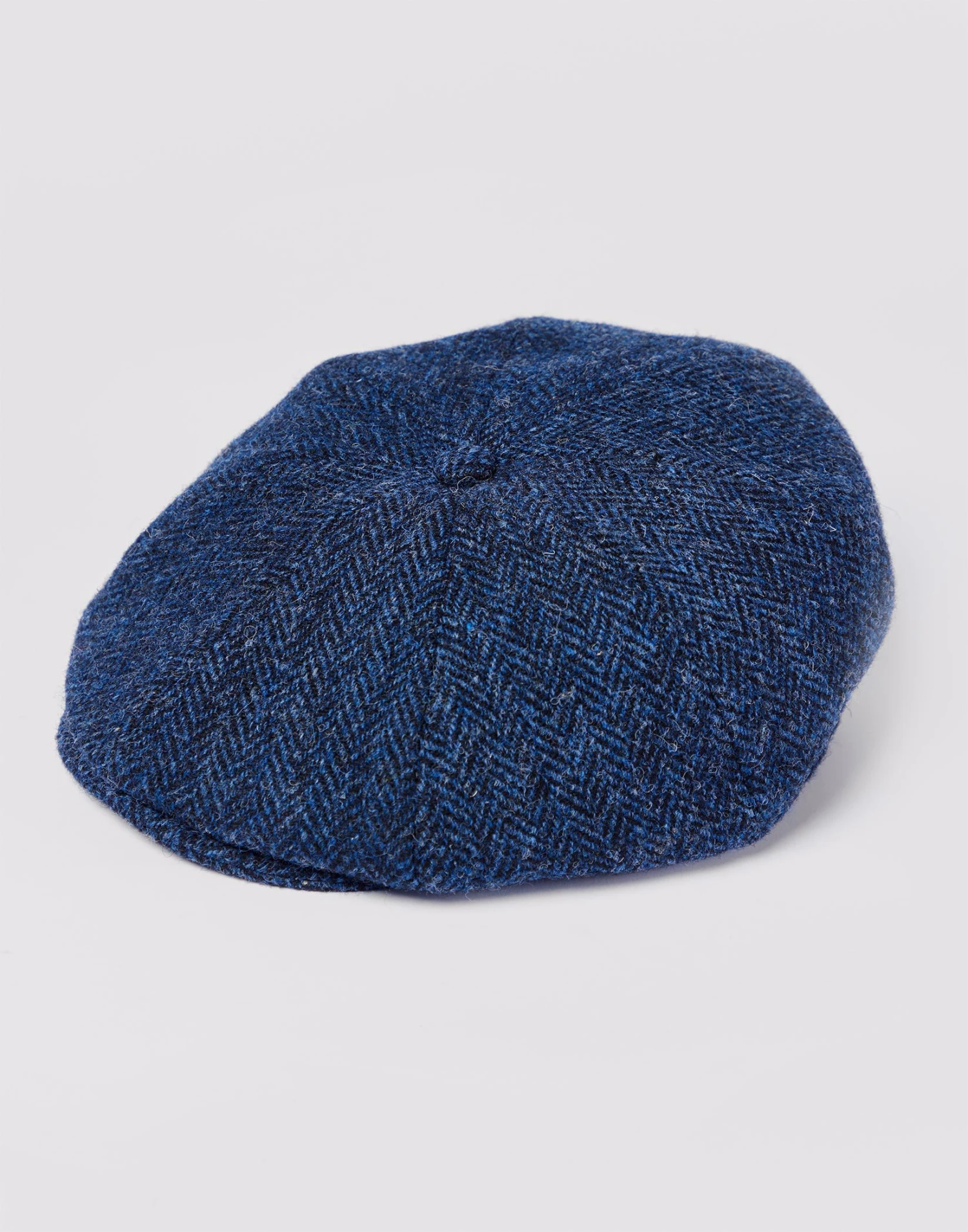 A stylish 8-piece Newsboy cap in blue tweed featuring a luxury quilted lining for a soft and comfortable fit. Our Newsboy caps are made from genuine Harris tweed which is hand-woven in the Outer Hebrides of Scotland using traditional methods ensuring exceptional durability warmth and a unique visually appealing texture.