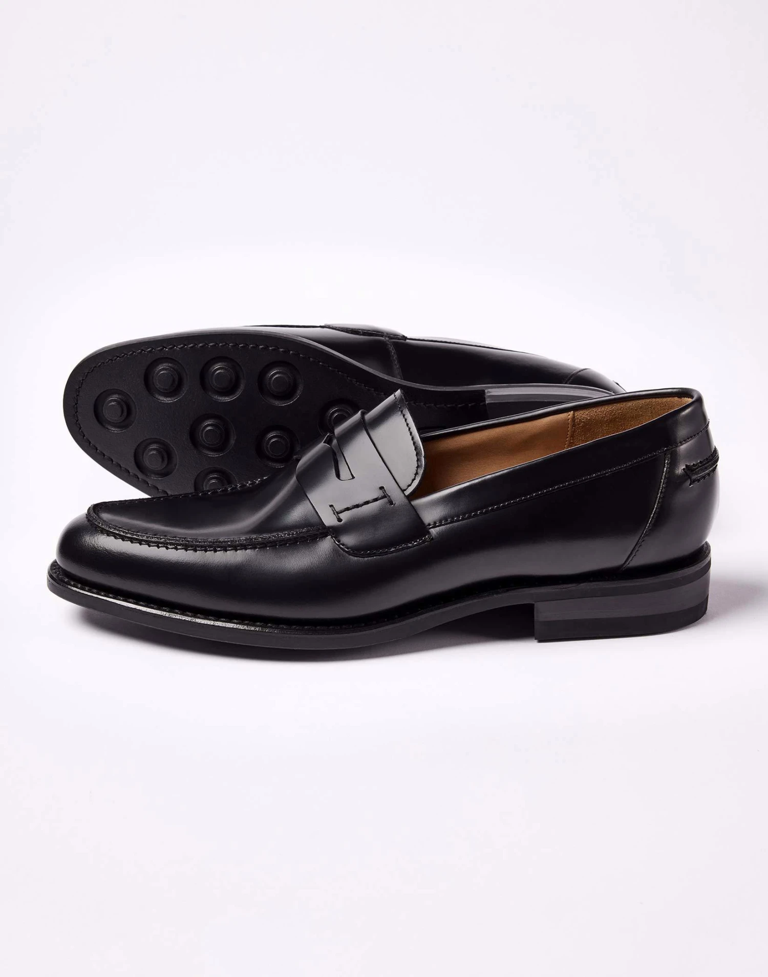 Made by Loake these Penny Loafers in a smart polished black leather have Goodyear welted rubber soles for greater durability and longevity.