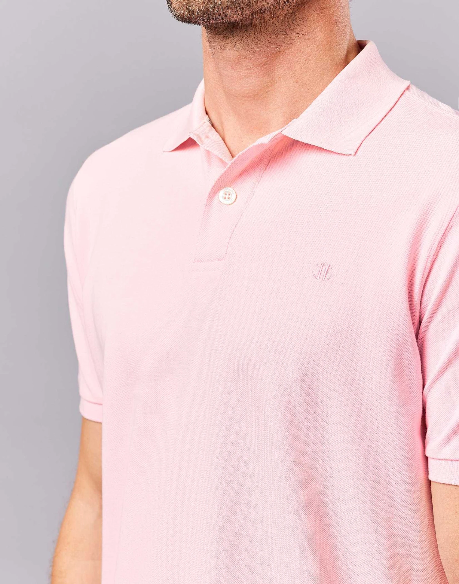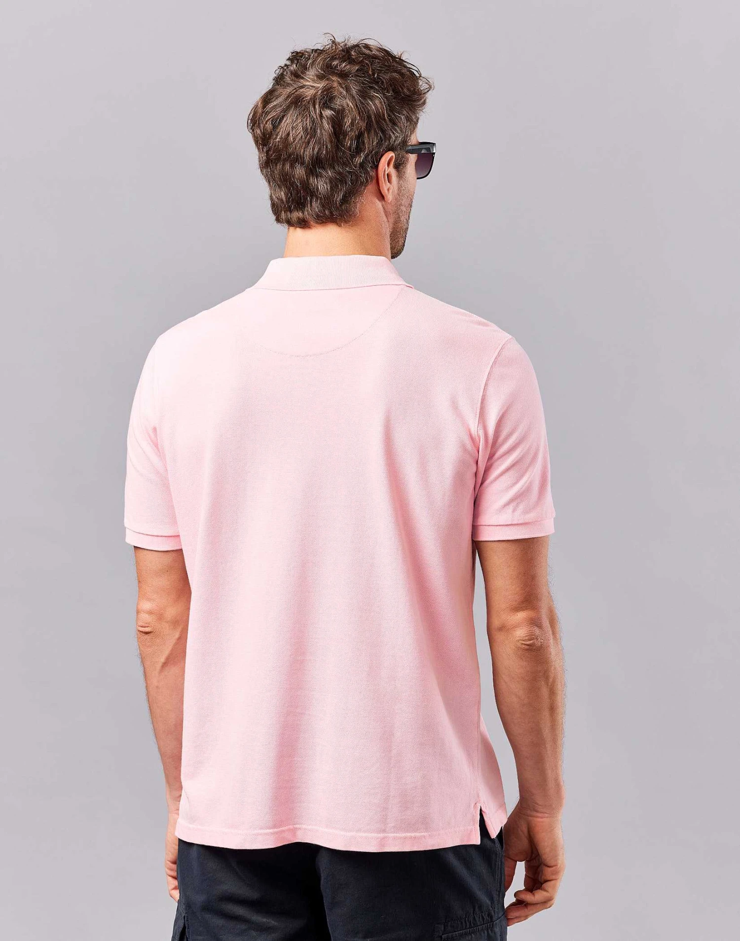 In breathable cotton pique that has been garment-washed for softness our men’s pique polo shirt in pink looks great worn with cotton chinos shorts or jeans for laid-back summer style.