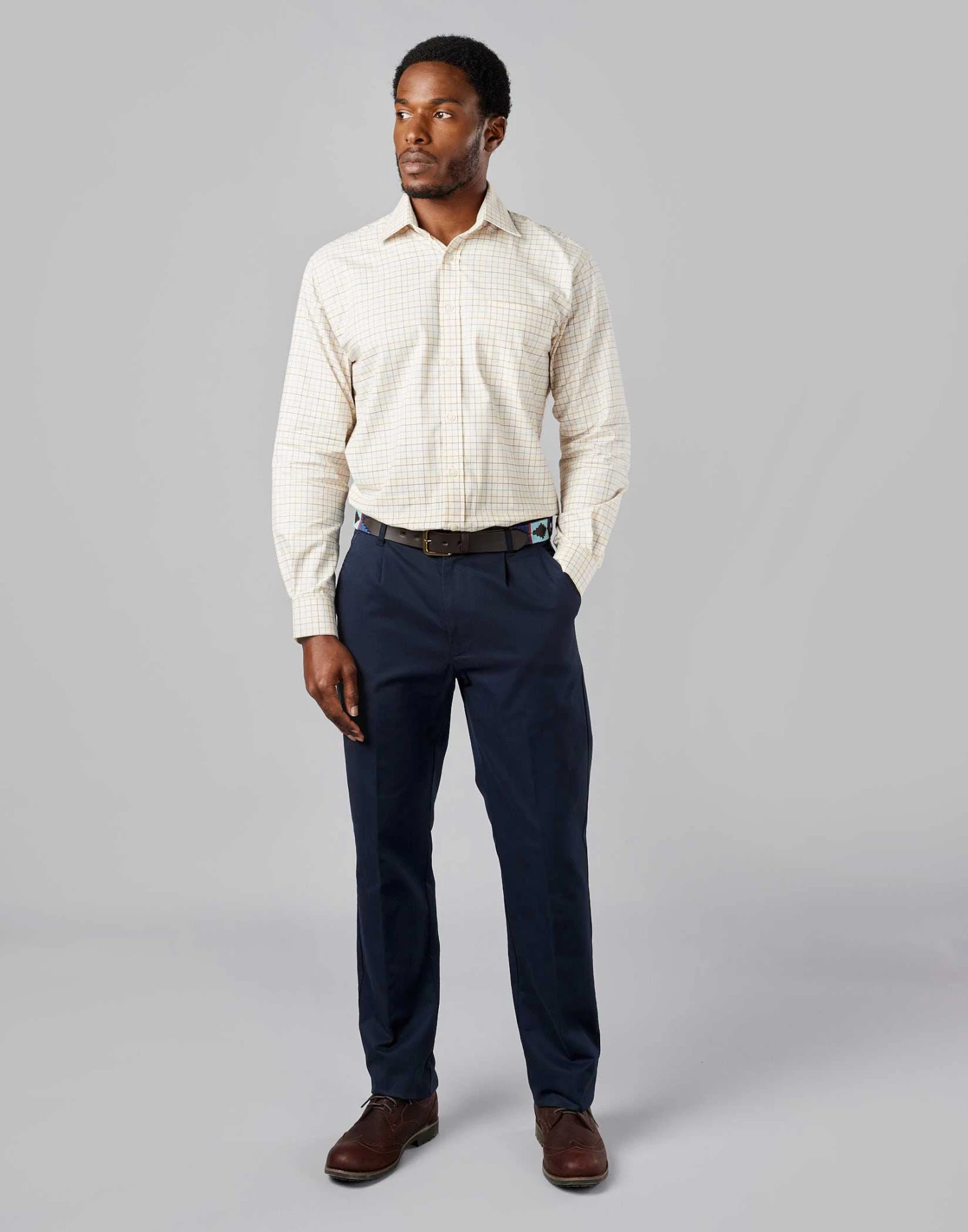 A cornerstone of smart-casual style cotton chinos are an essential component of every man’s wardrobe and a great starting point for any outfit. Our cotton chinos have been garment washed for softness ensuring complete comfort from the moment you put them on. With single reverse pleats providing a classic tailored look these navy chinos look great teamed with a casual check shirt and your favourite pair of leather deck shoes.