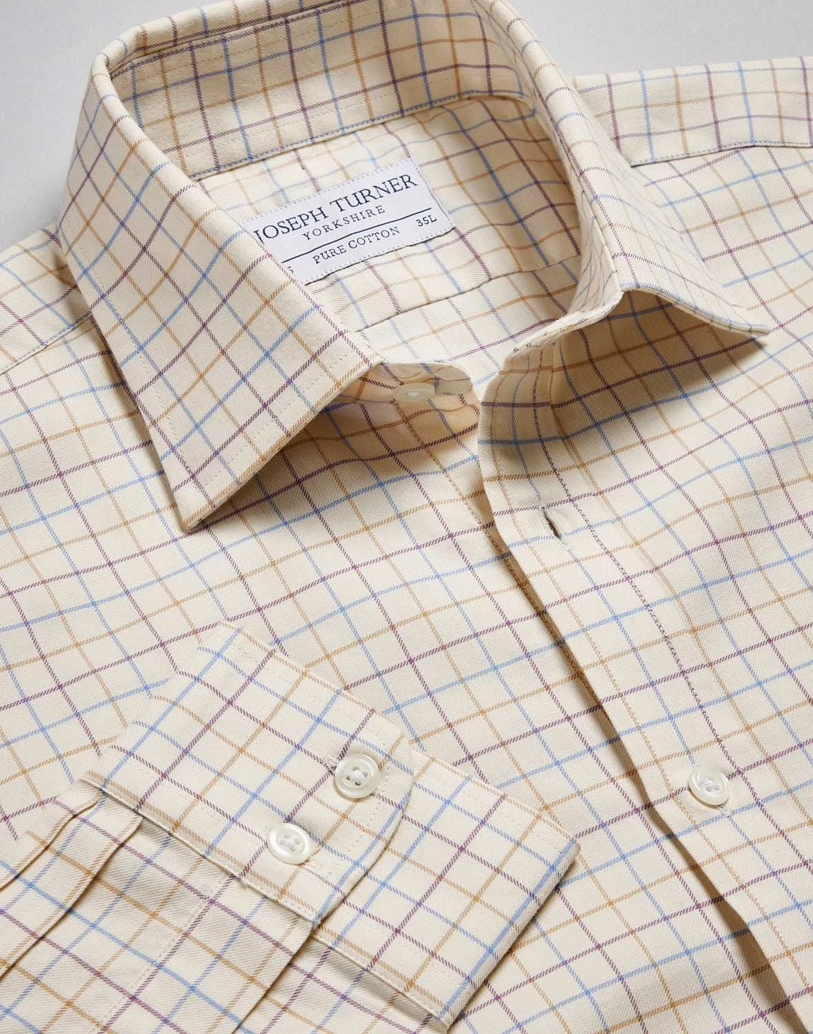 Perfect the British country style in one of our heritage tattersall shirts featuring a smart plum blue & taupe narrow check design. Tailored from pure brushed cotton twill with a two-piece collar and a split back yoke for a smooth fit this classic men’s country shirt will look just the part teamed with corduroy trousers and a pair of country brogues.