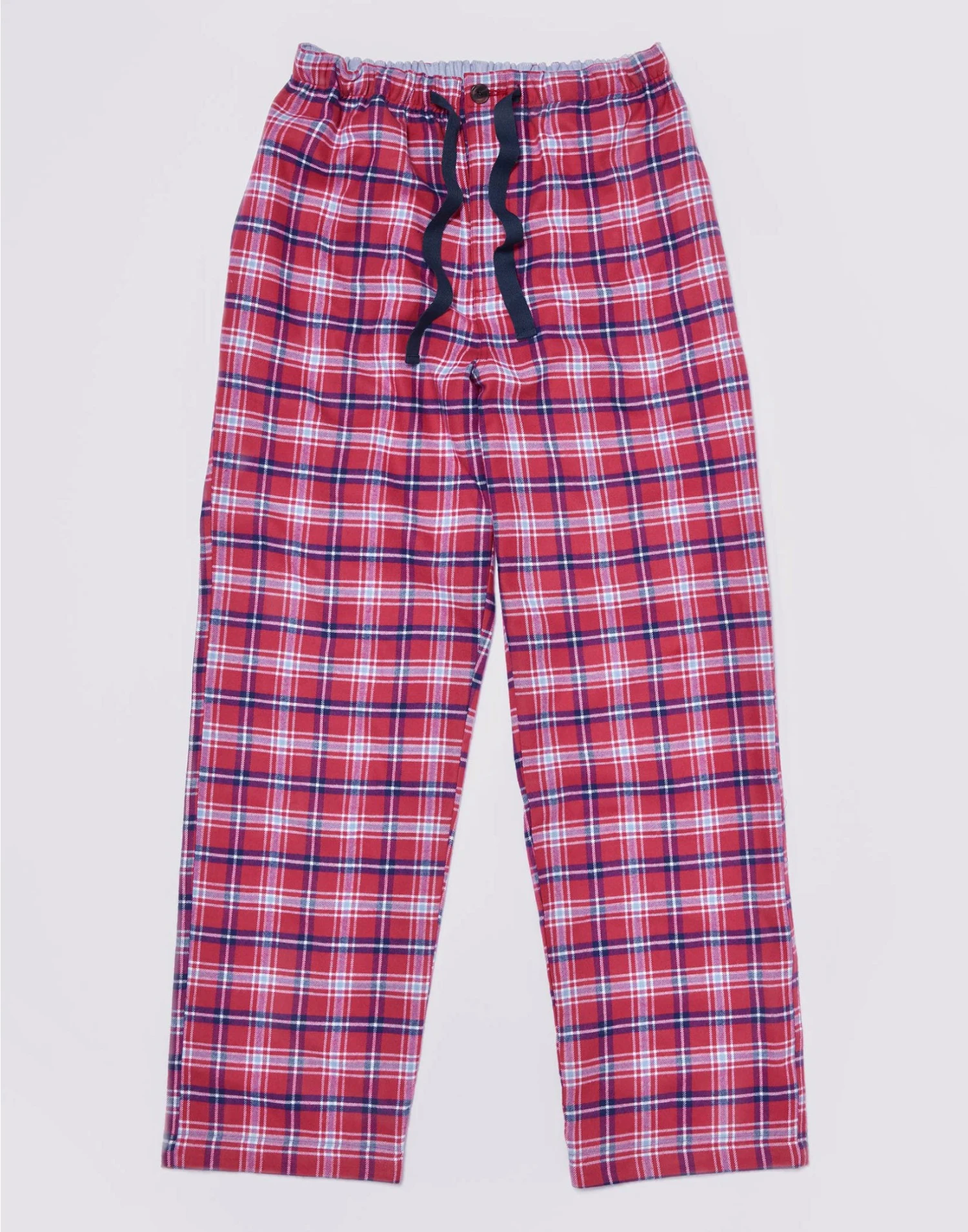 Made from 100% brushed cotton these wonderfully soft men’s pyjama bottoms in a handsome red & navy check effortlessly combine classic charm with modern comfort. With an elasticated drawstring waist for a comfortable fit and made from a natural breathable fabric they are the go-to option for relaxed nights in or lazy Sunday mornings. Pair your pyjama bottoms with your favourite cotton t-shirt and add some warmth to your feet with a pair of sheepskin slippers.