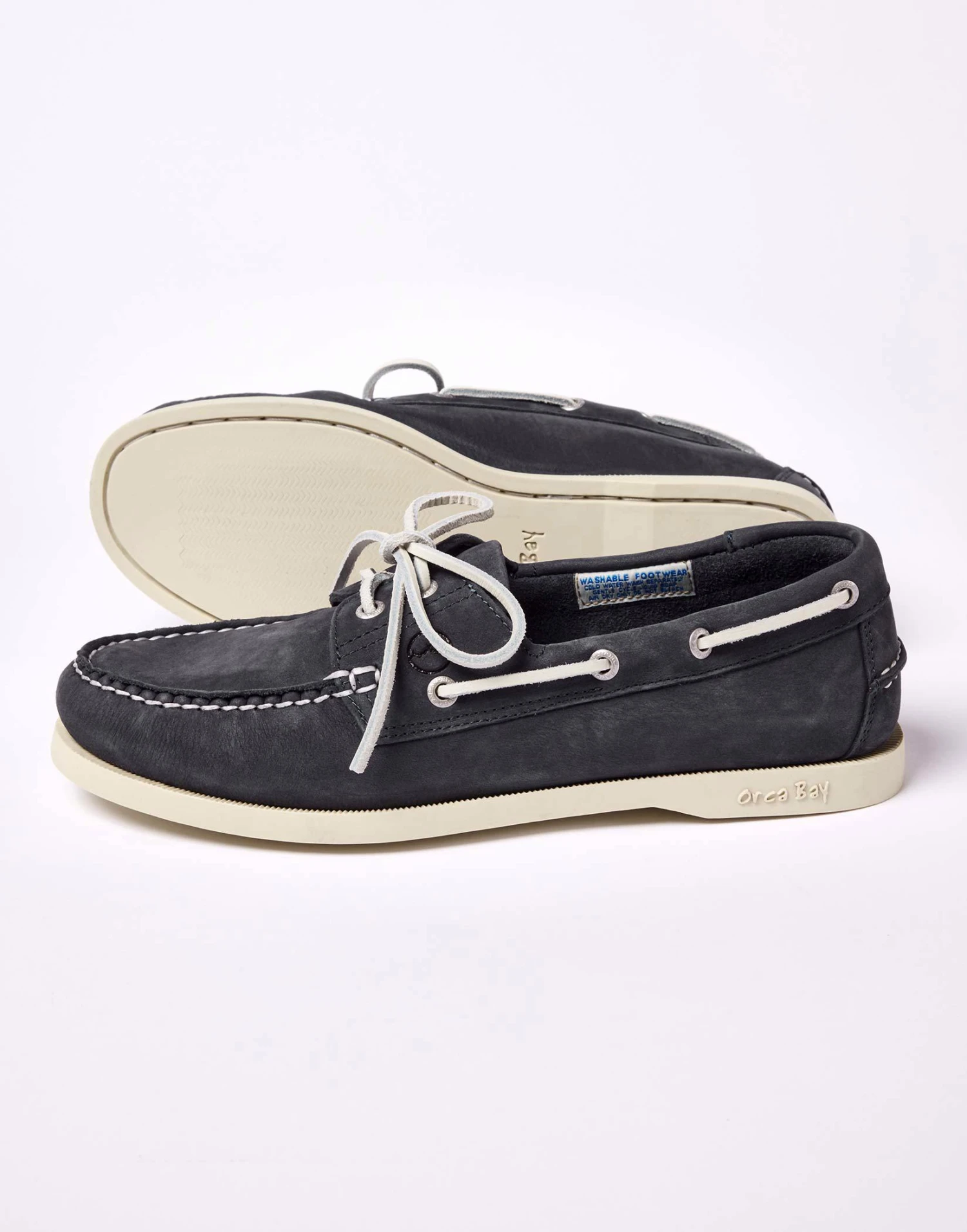 Made from soft nubuck washable leather and hand-stitched using traditional methods the Orca Bay Sandusky in classic Indigo will make a welcome addition to your summer wardrobe. Machine washable with a non-slip non-marking rubber sole the Sandusky is as practical as it is stylish.