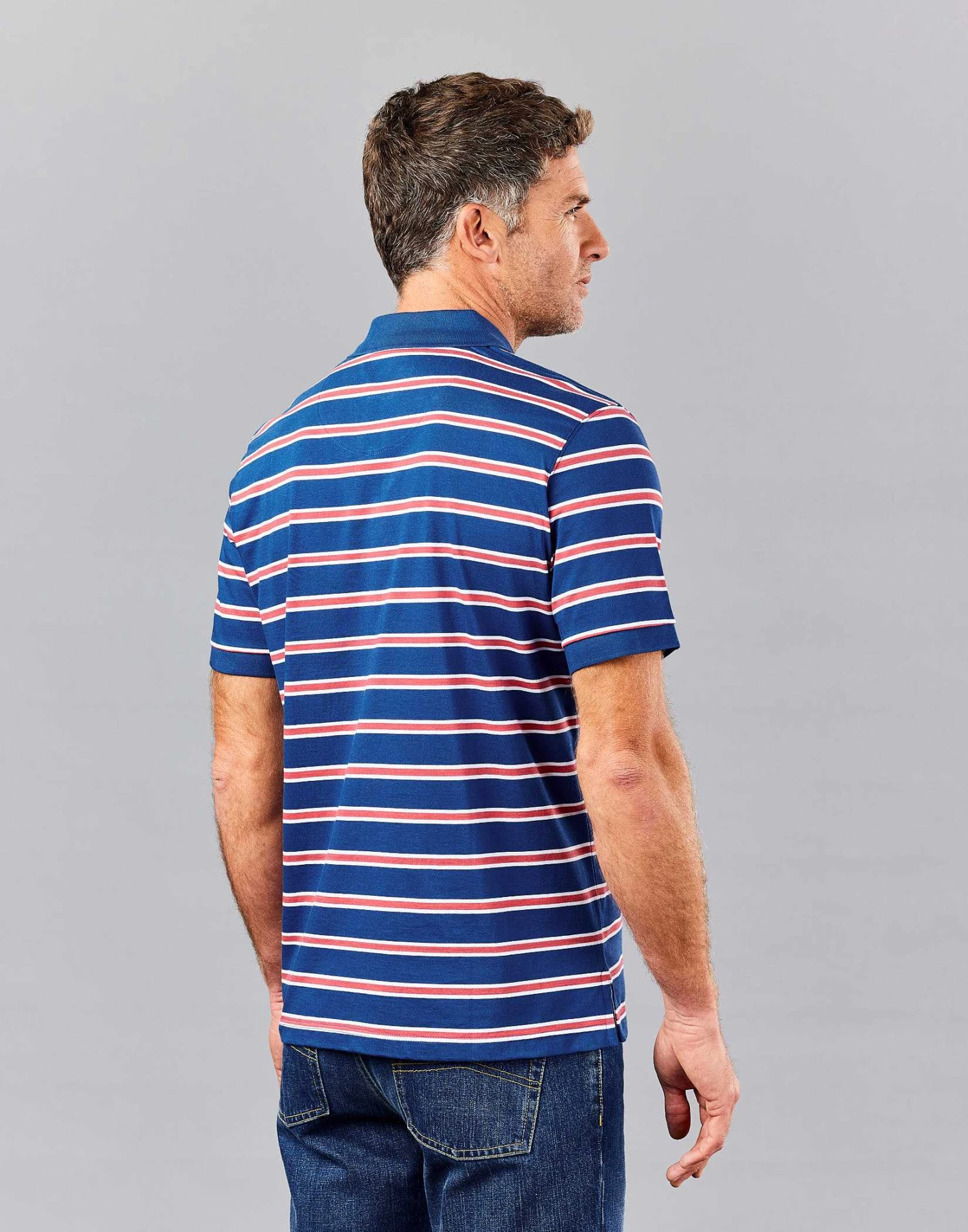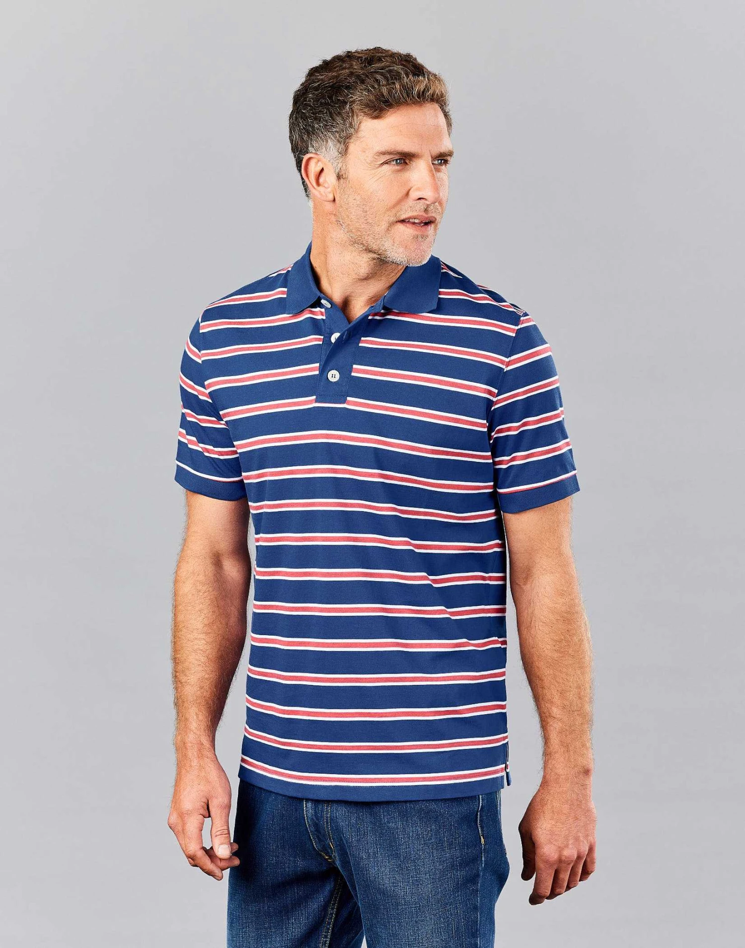 Add interest to chinos and shorts with one of our men’s striped polo shirts in blue & red. Made from exceptionally soft pure cotton jersey these polo shirts combine style with comfort.