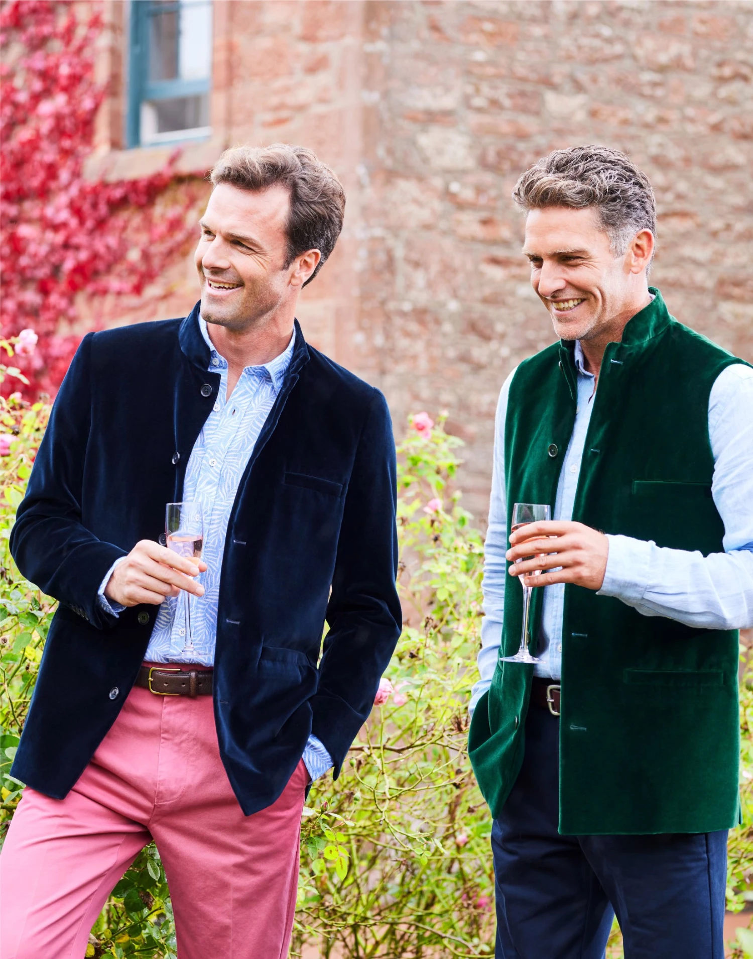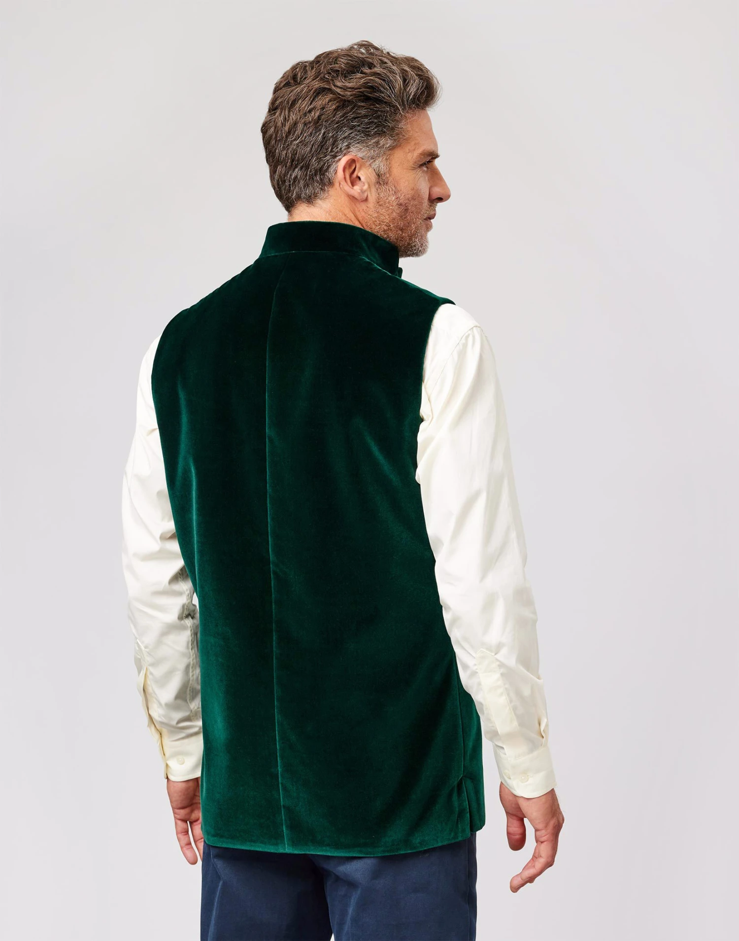 Carefully constructed from the finest Italian velvet for a super-soft finish our luxurious men’s velvet gilet in a rich bottle green is sure to impress. Featuring a Mandarin style collar for a contemporary feel and fully lined for smooth layering this velvet waistcoat from Italian Mill Pontoglio will make a refined addition to your occasion collection.