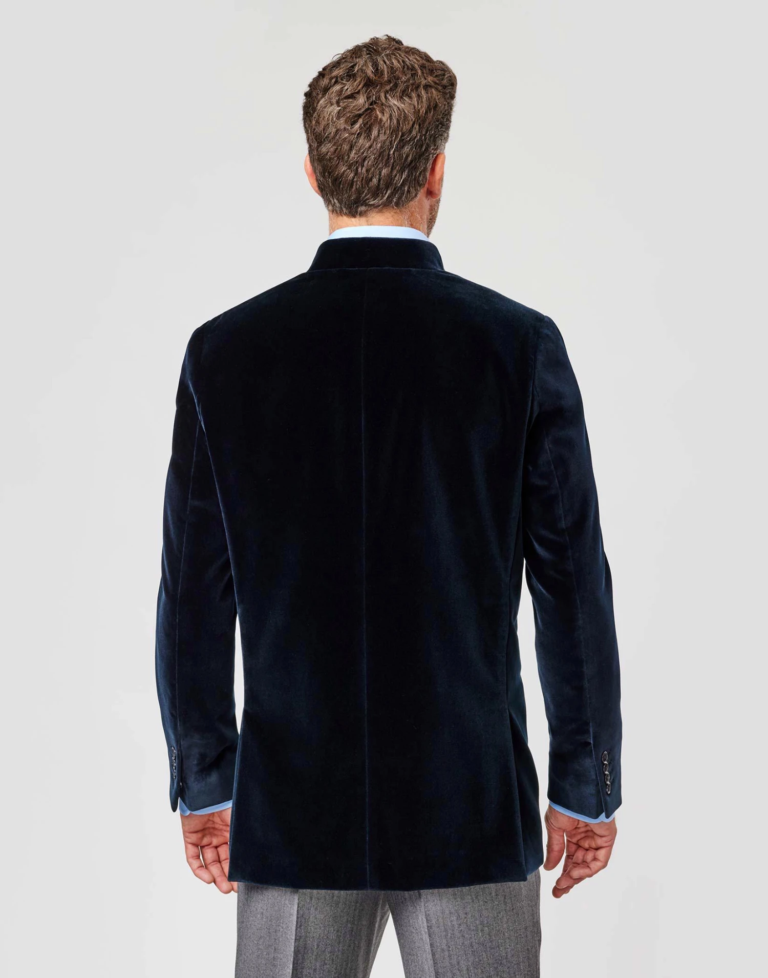 Carefully constructed from the finest Italian velvet for a super-soft finish our luxurious men’s velvet jacket in a classic dark navy is sure to impress. Featuring a Mandarin style collar for a contemporary feel and fully lined for smooth layering this velvet blazer from Italian Mill Pontoglio will make a refined addition to your occasion collection.