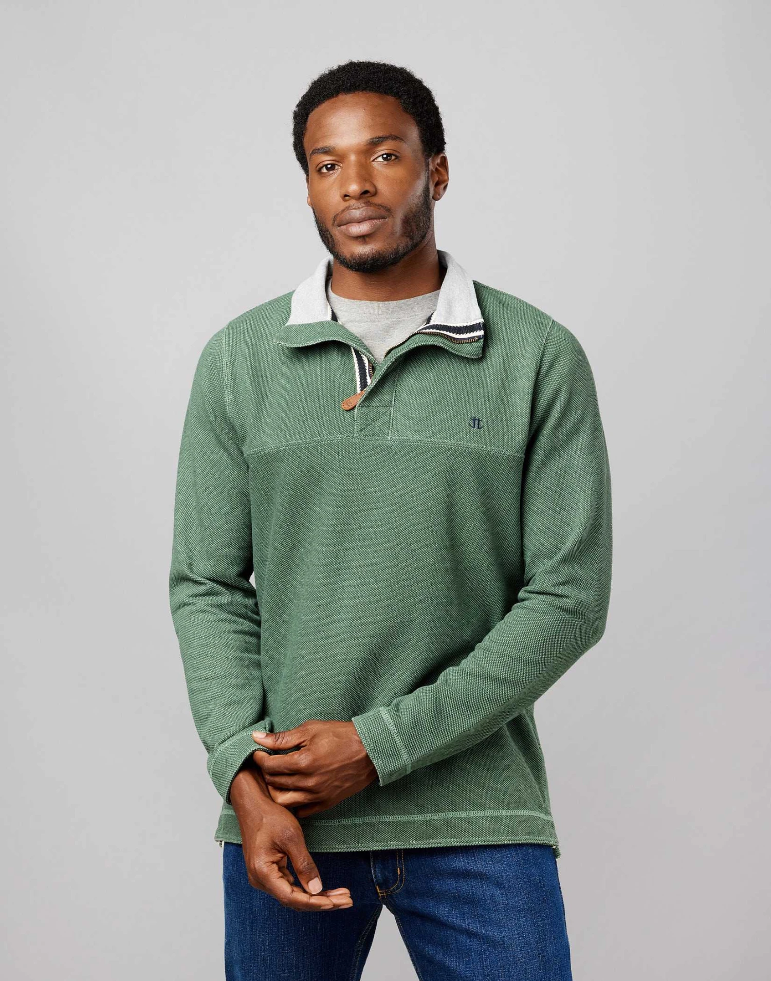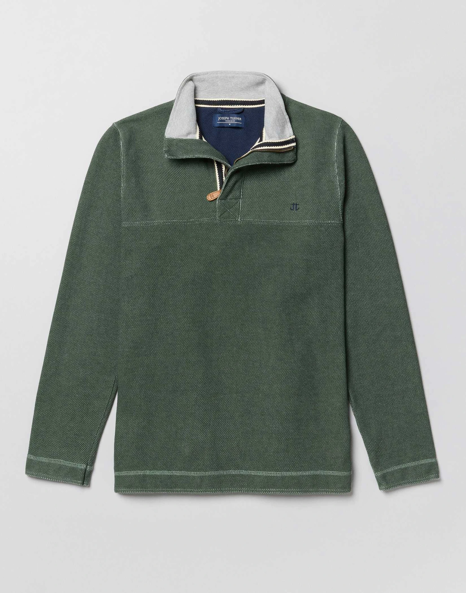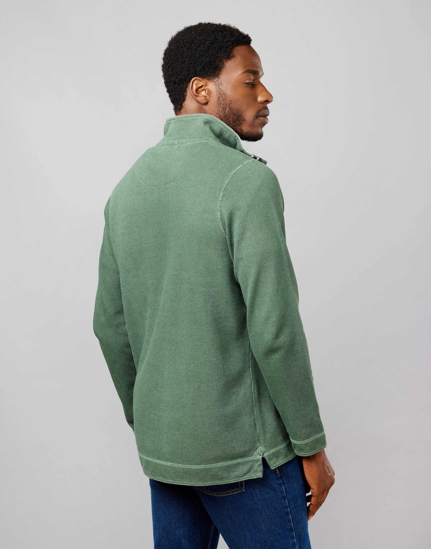 A robust men’s half-zip piqué sweatshirt in a handsome shade of green and heavily washed to accentuate its texture for a relaxed vintage feel. Made from pure washed cotton piqué with a contrast ribbed inner collar these half-zip sweatshirts offer easy laid-back comfort that will endure season after season.