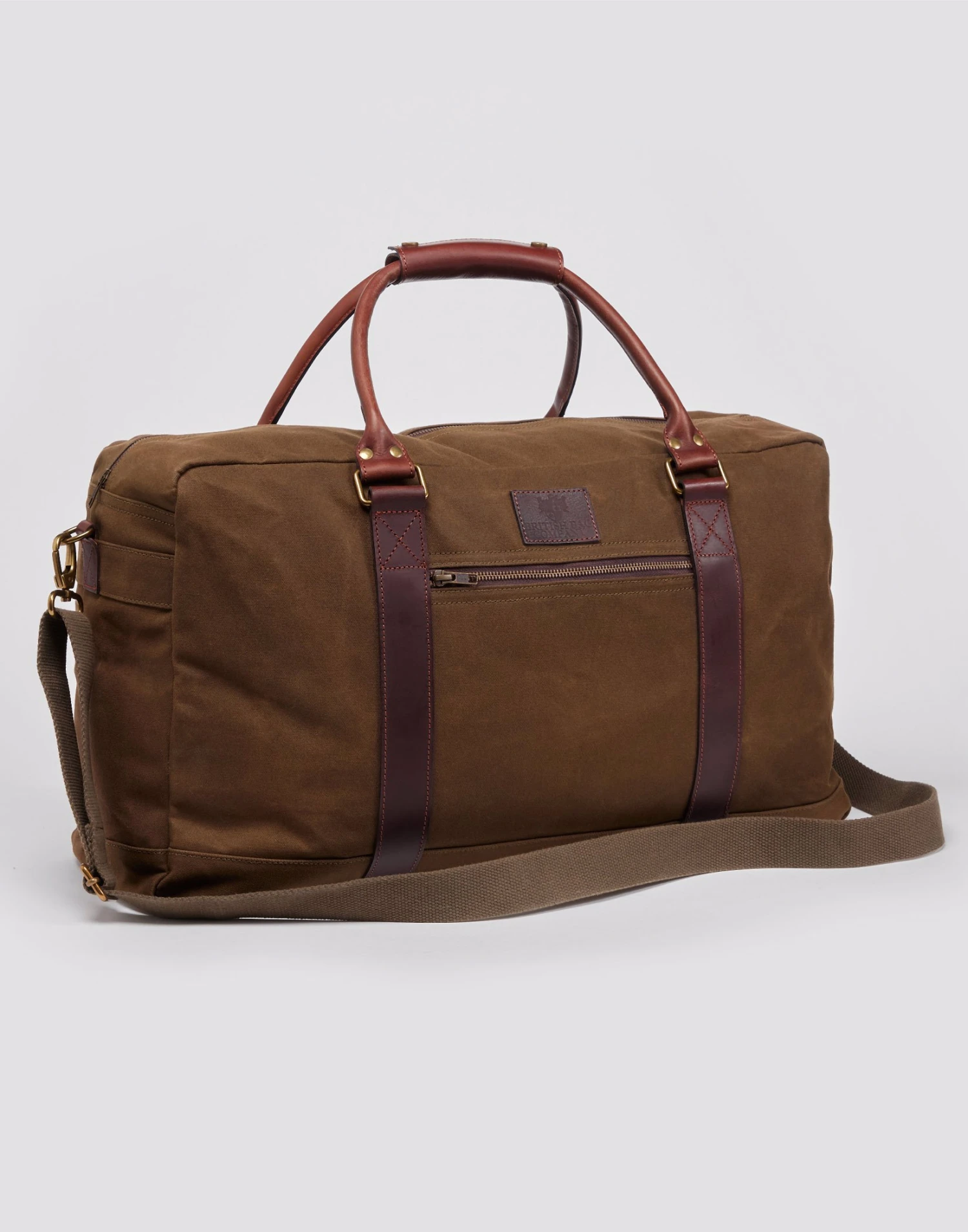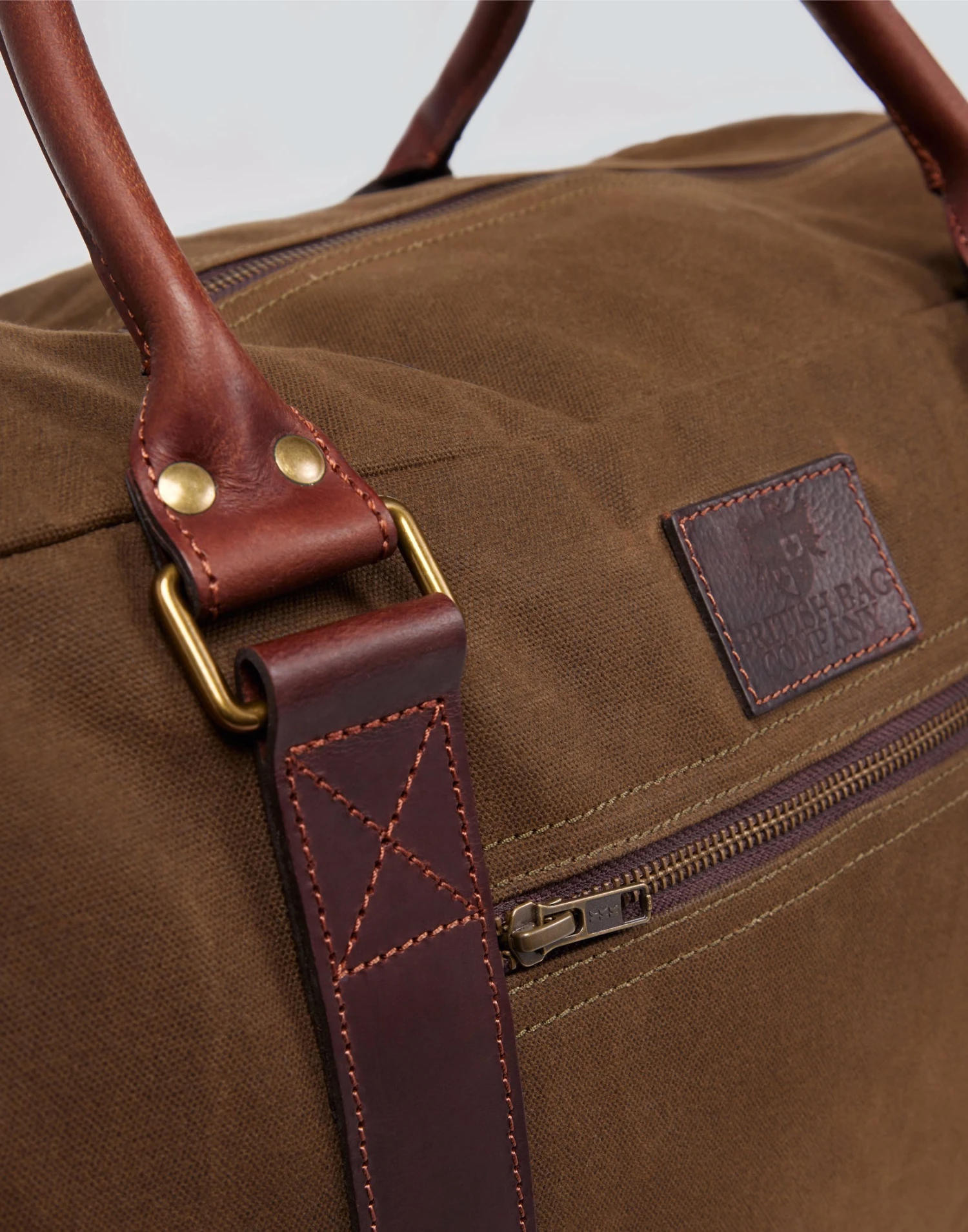 Perfect for going abroad or for long weekends away in the country pack everything you need into this classic khaki holdall. Constructed using heavyweight waxed cotton canvas and finished with full grain leather handles & trim this robust bag is built to travel and made to last.