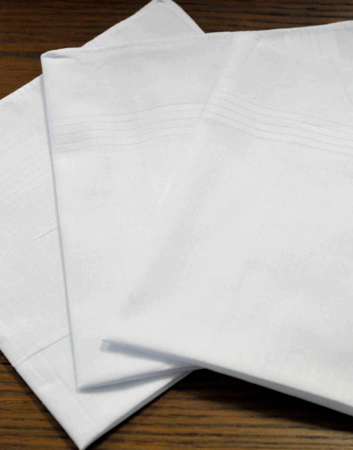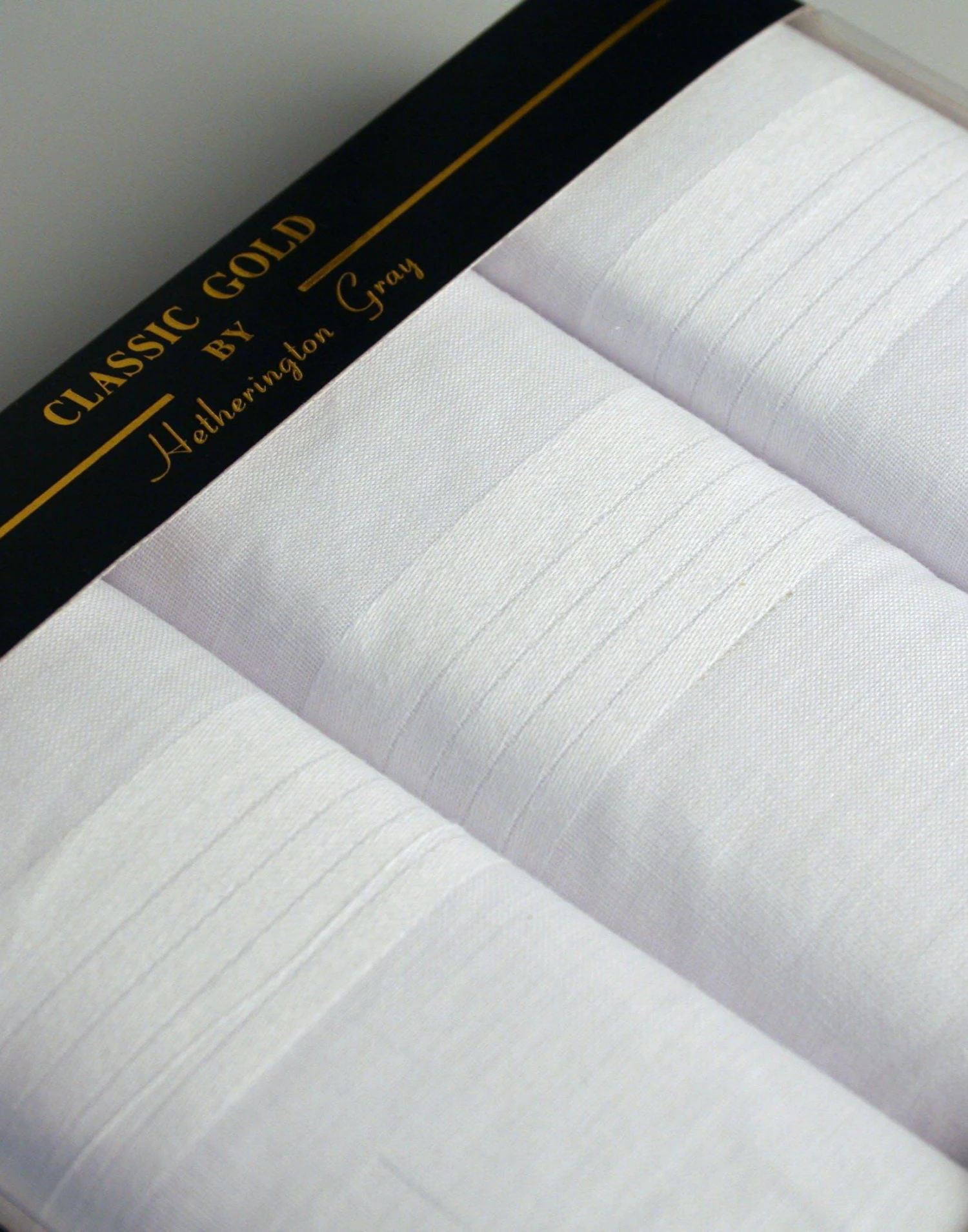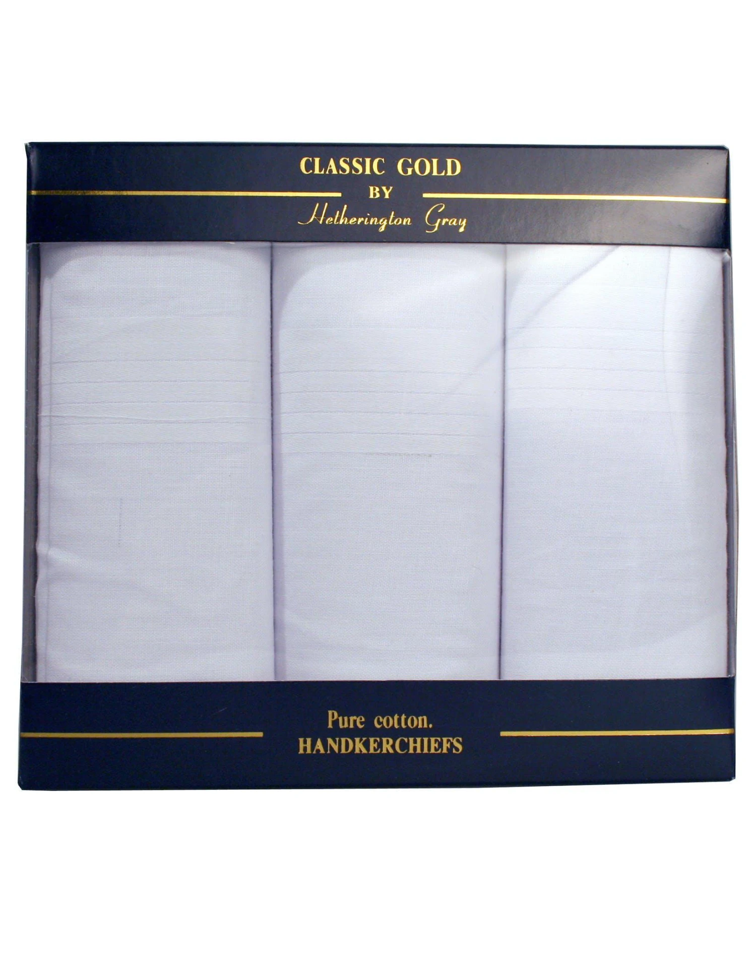 Our 3 boxed classic white cotton handkerchiefs are an essential accessory.
