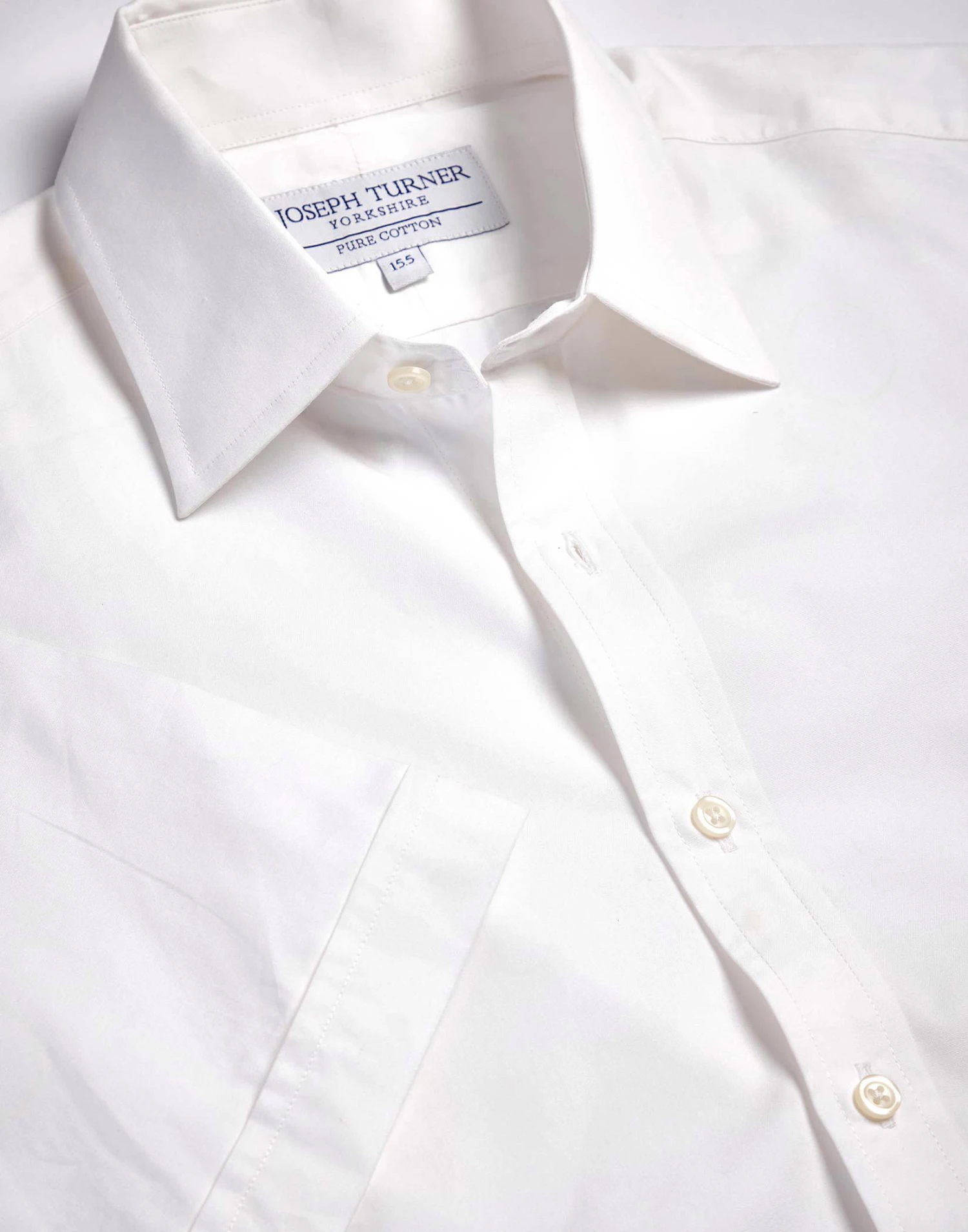 Stay smart as the temperature rises in one of our white poplin short sleeve shirts. With neat turn-ups and a handy breast pocket it looks great when teamed with one of our pure silk ties.